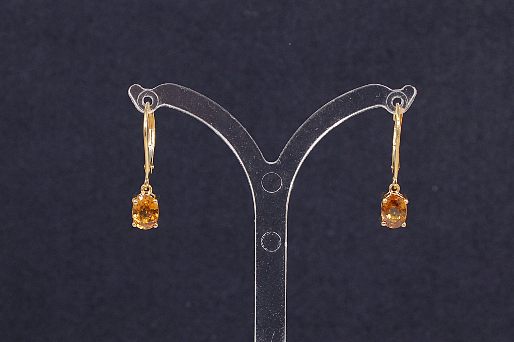 A pretty pair of 10ct Gold Honey Citrine drop earrings, each featuring an oval faceted Honey Citrine set in an elegant 4-claw basket mount.
