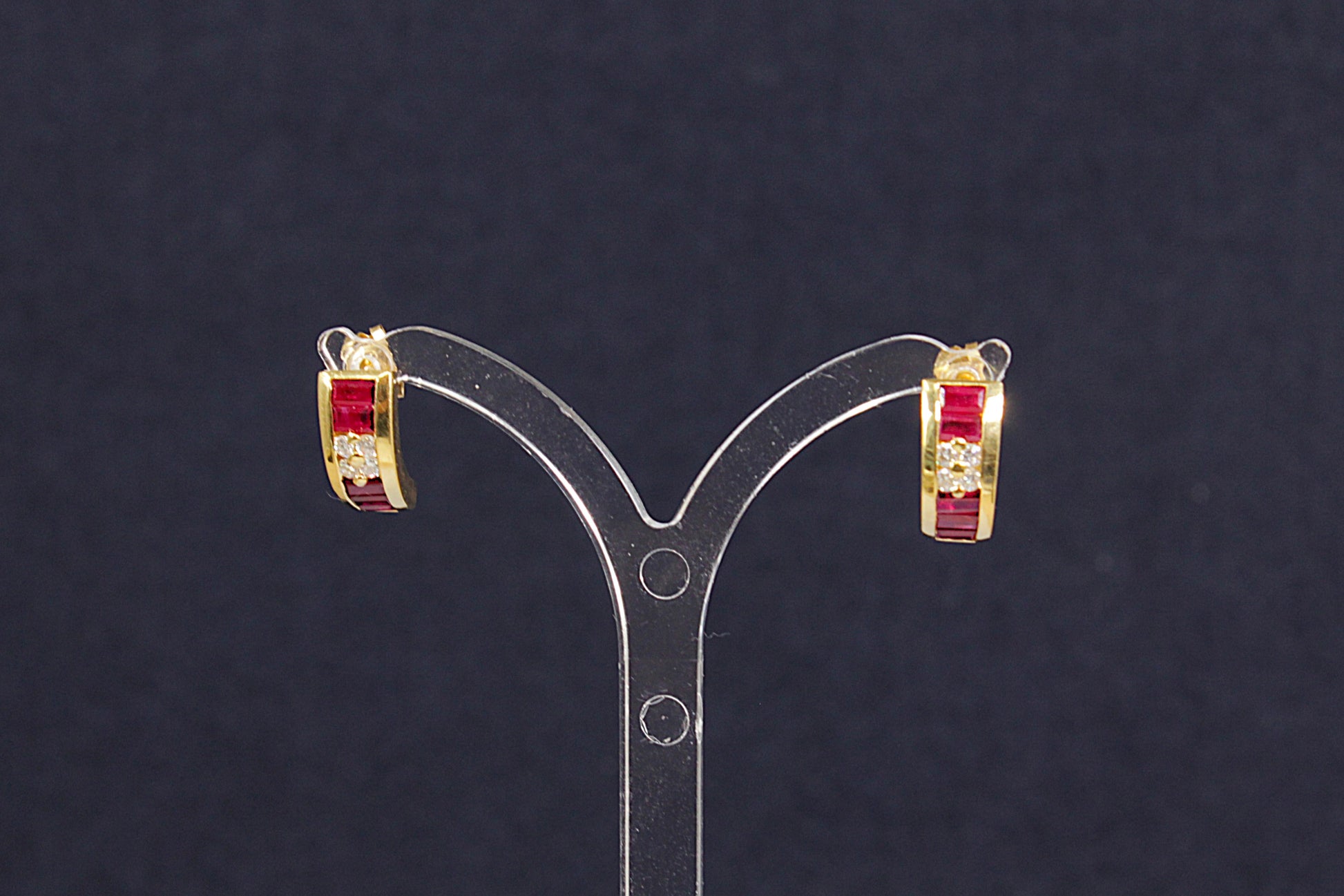 A stunning pair of 18ct Gold Ruby and Diamond earrings, designed with timeless elegance.