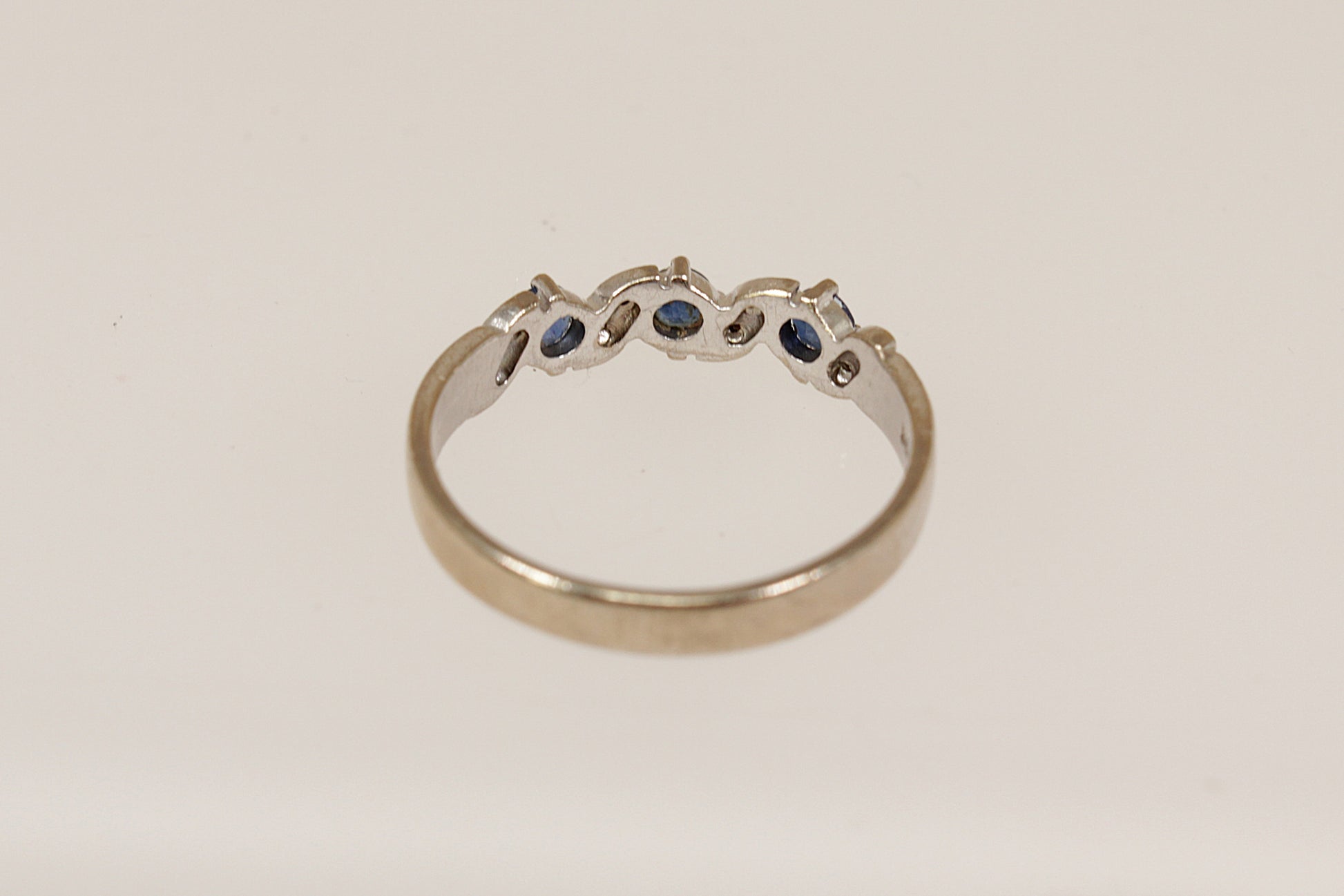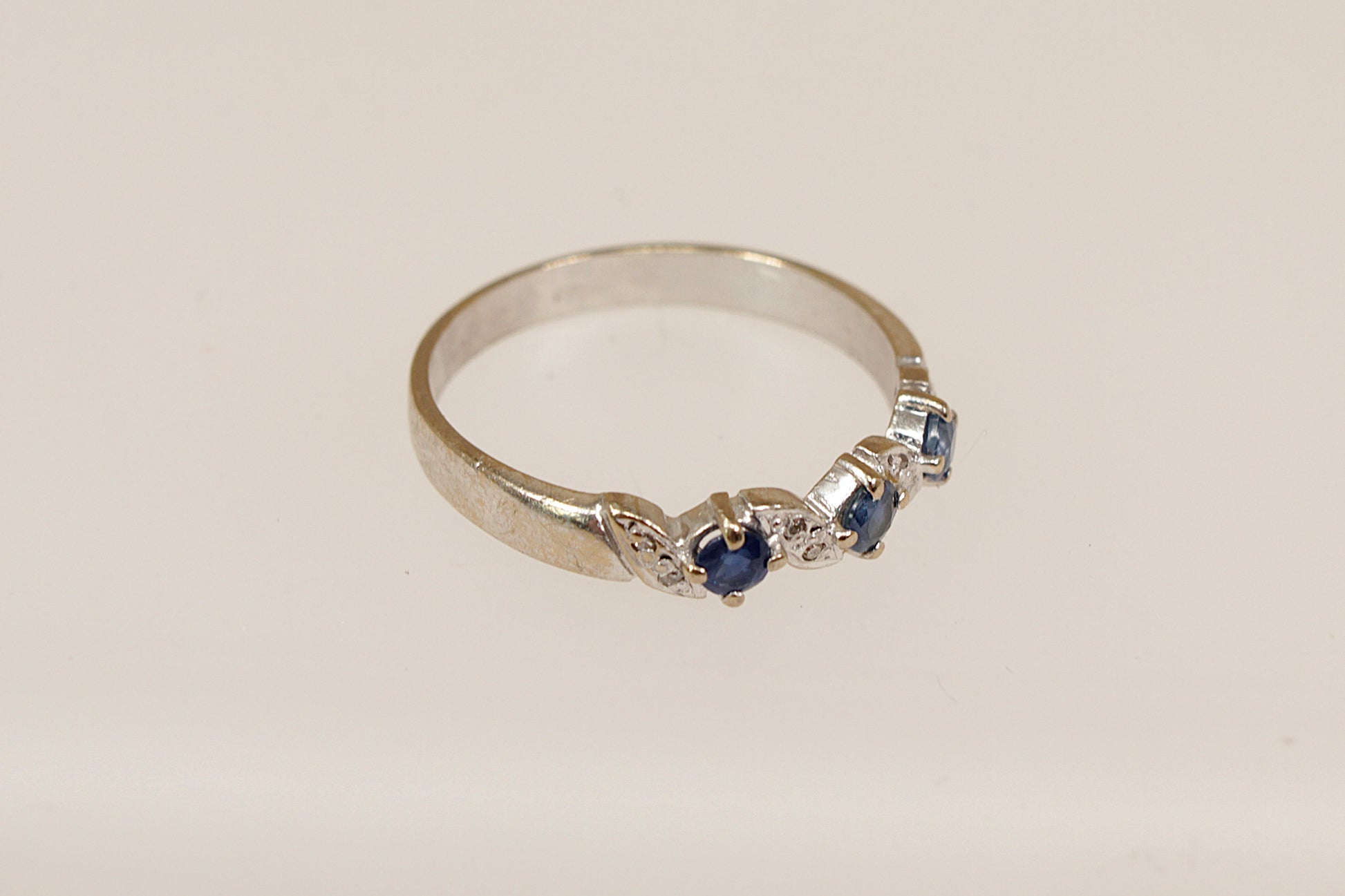 This pretty and elegant 18ct White Gold ring is a charming and elegant design, featuring three midnight blue sapphires set across the band.