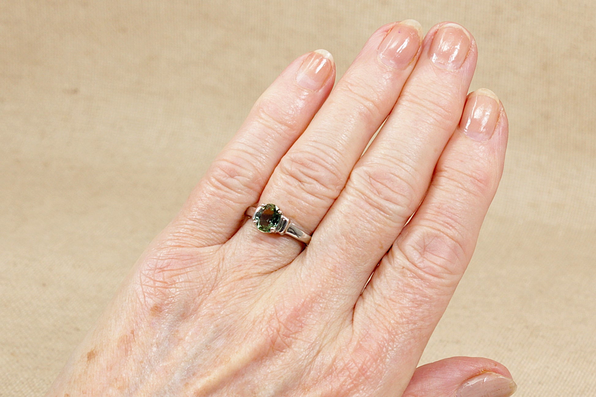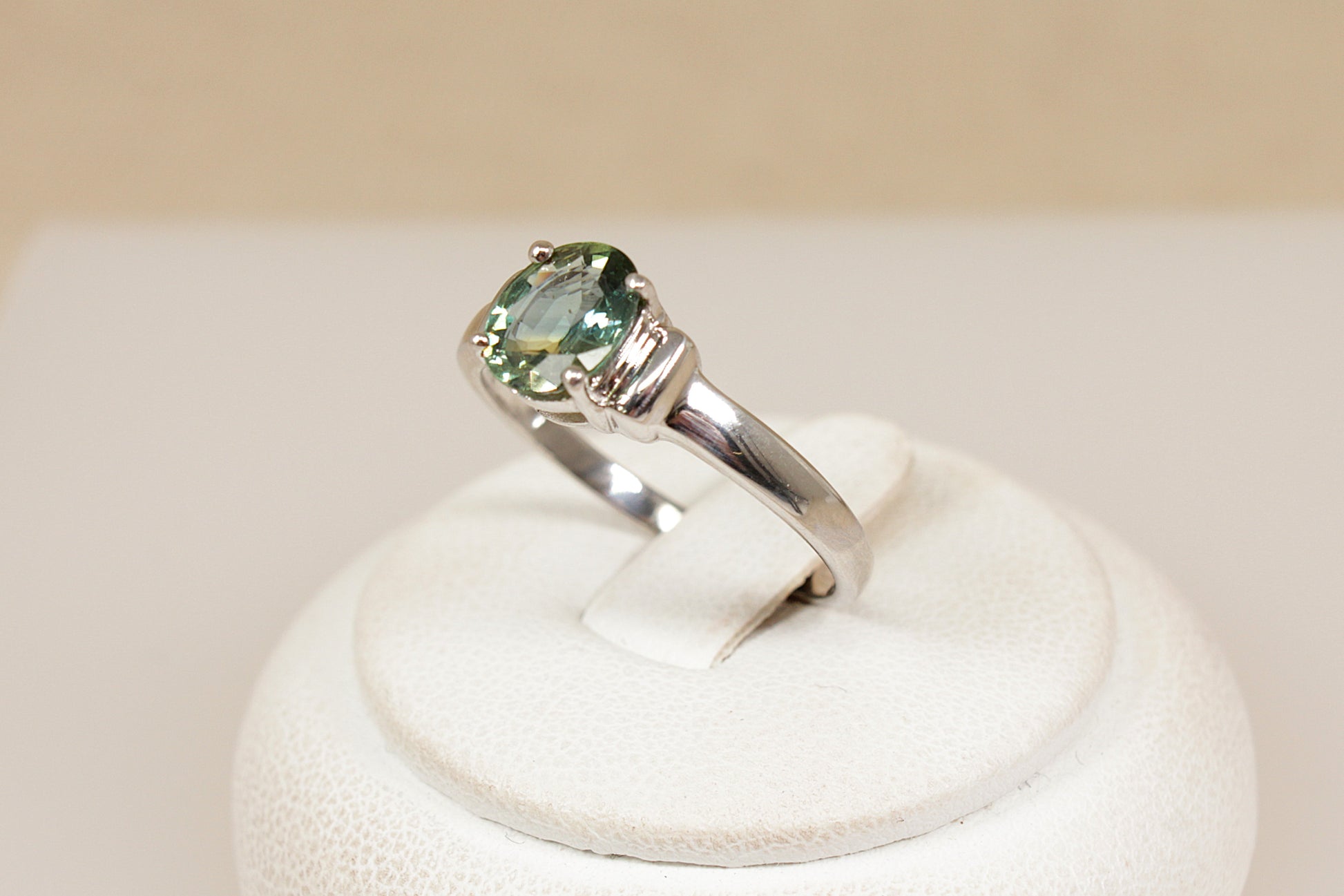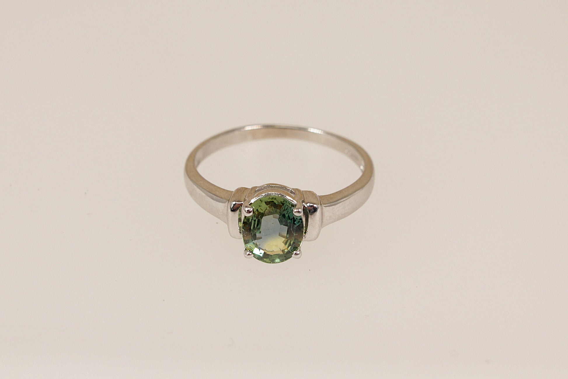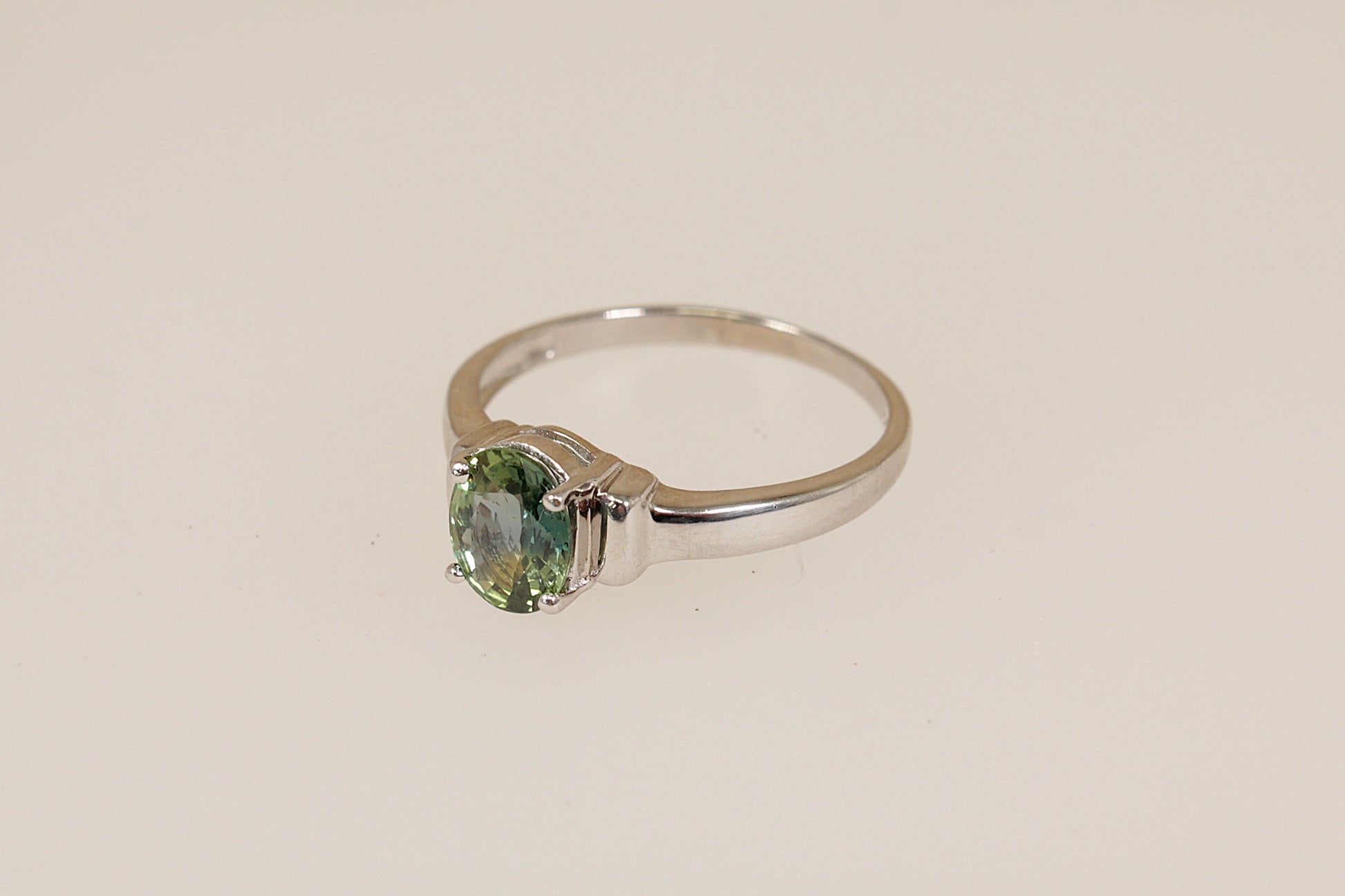9ct White Gold and Green Sapphire Solitaire Ring