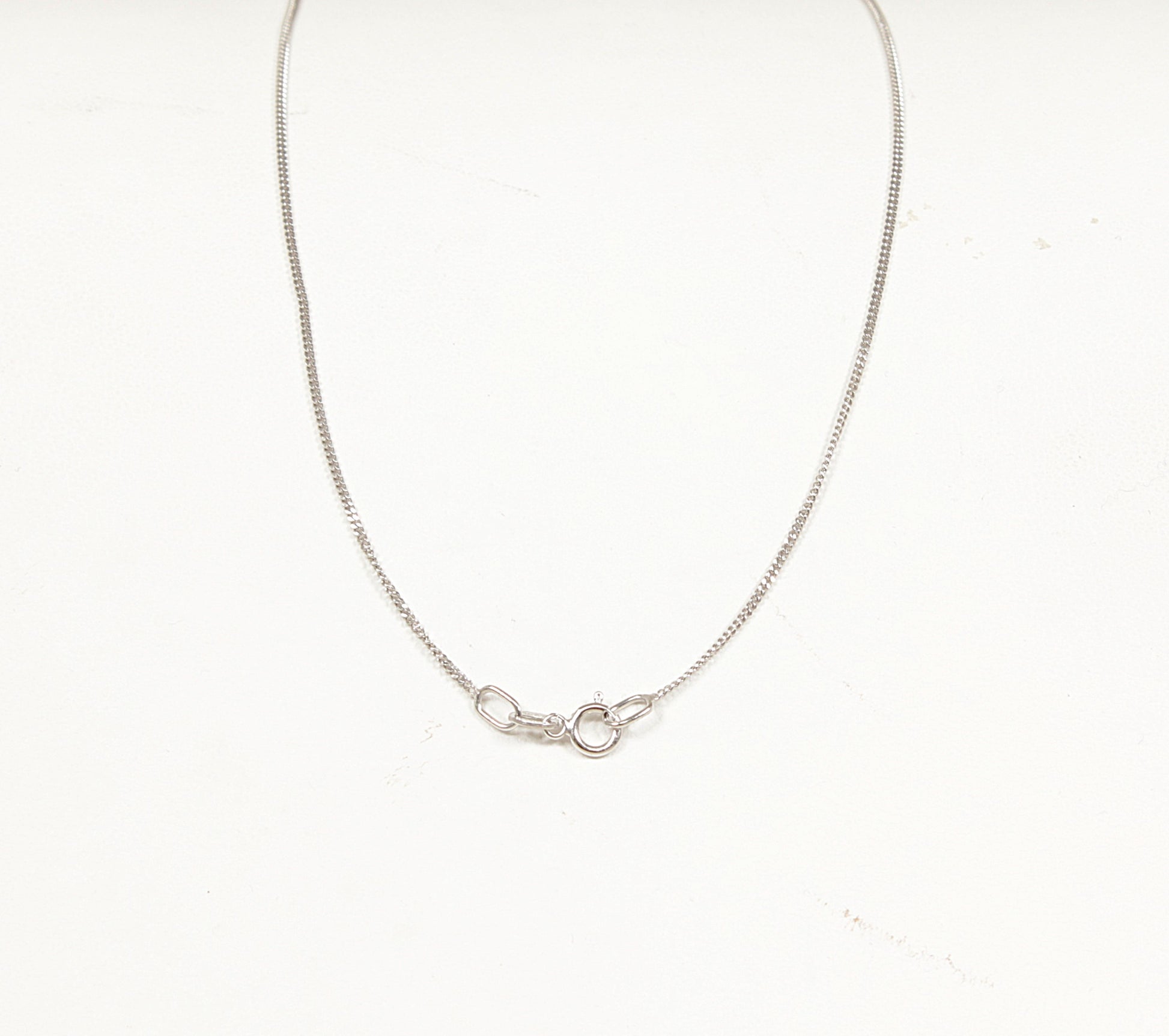 The pendant glitters effortlessly as it moves and is paired with a white gold curb-link chain, which adds further shimmer in the light.