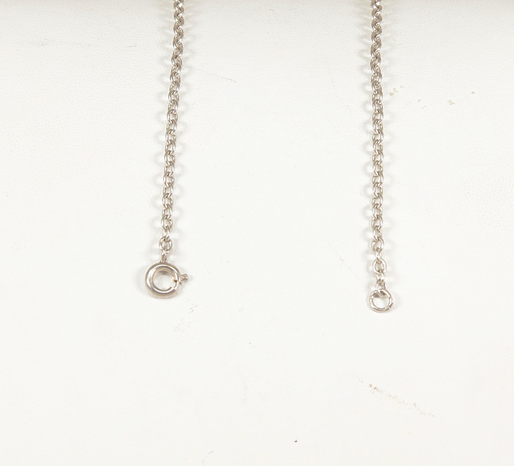 A chunky articulated bail with a hinge adds both movement and presence to the design, and the pendant is suspended from a silver belcher chain.