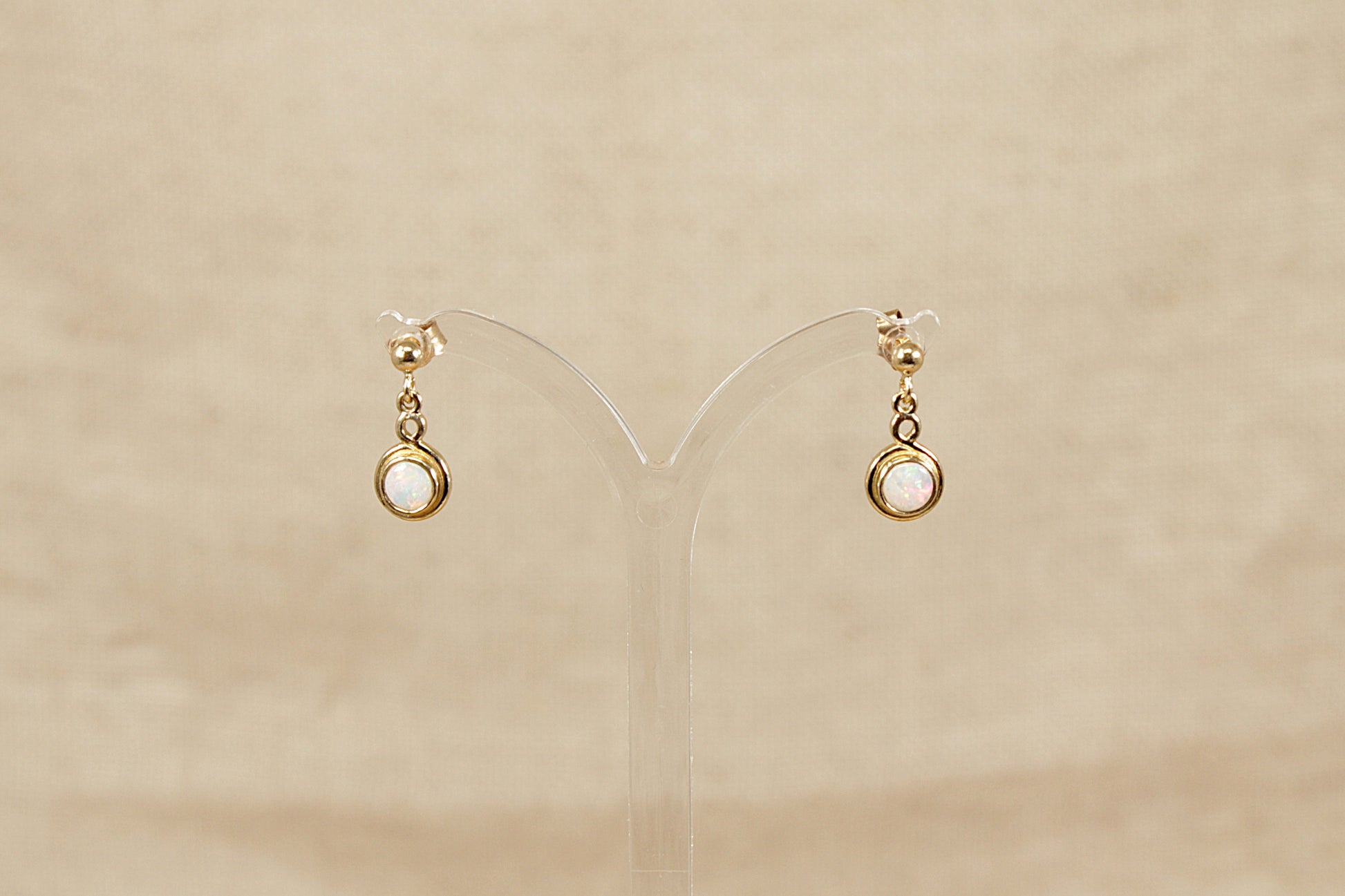 The opal droppers are articulated, allowing subtle movement and sparkle when worn. The posts are stamped 375, confirming 9ct gold purity.