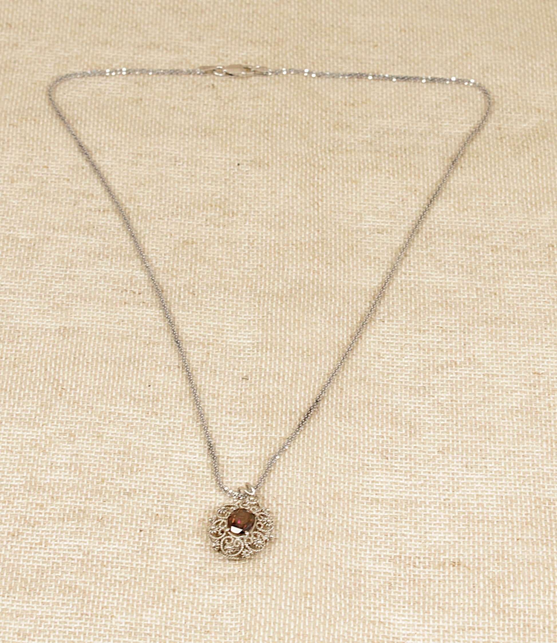 Vintage Italian Silver, Golden Zircon Ornate Pendant and Chain Necklace