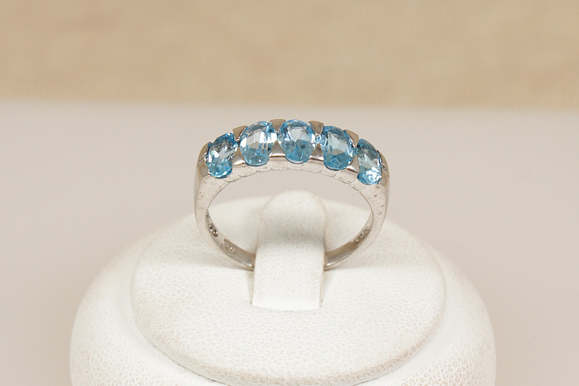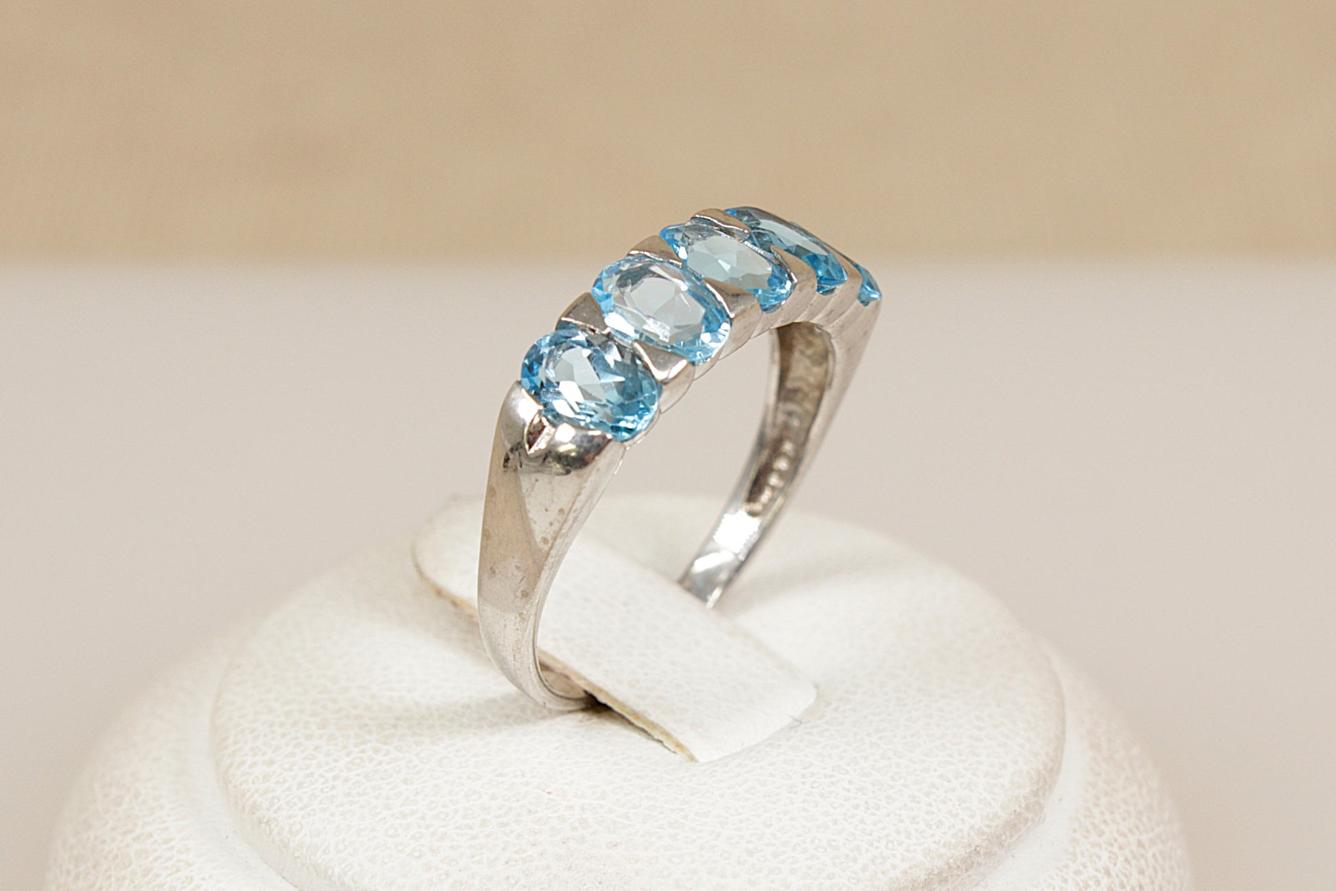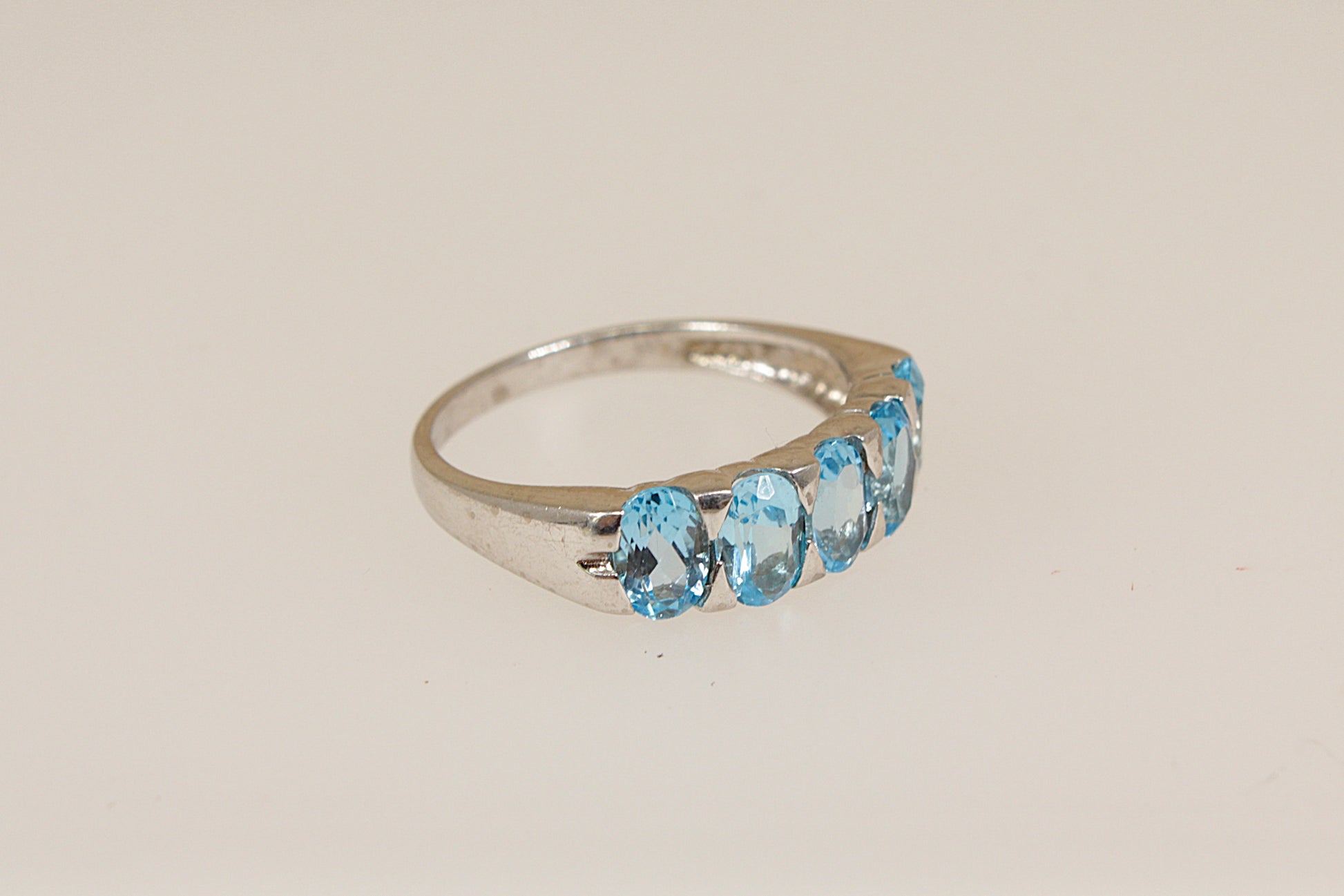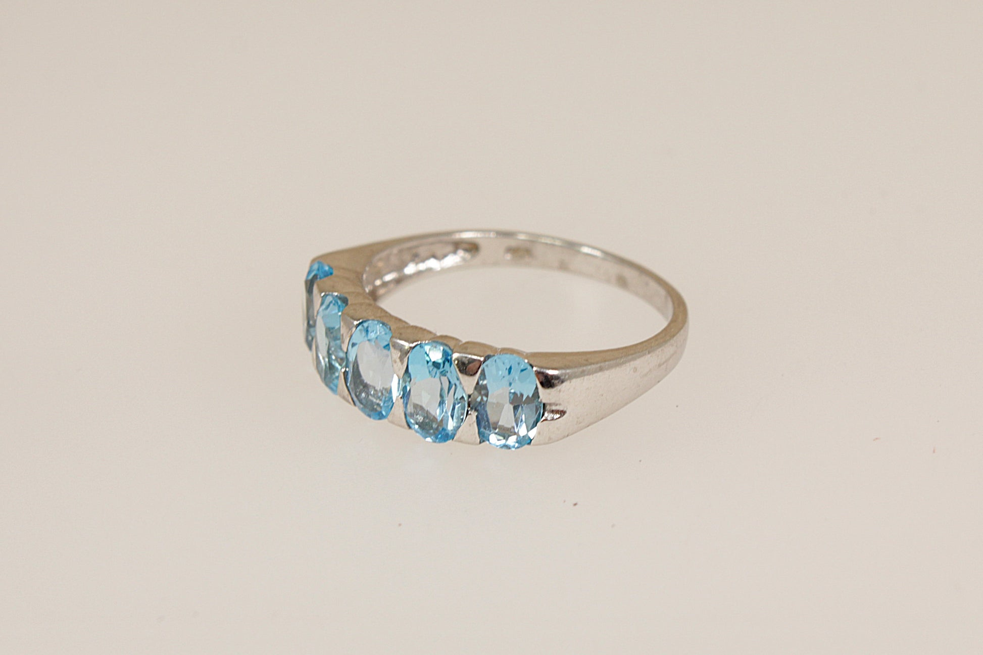 Silver 5 Stone Blue Topaz Ring