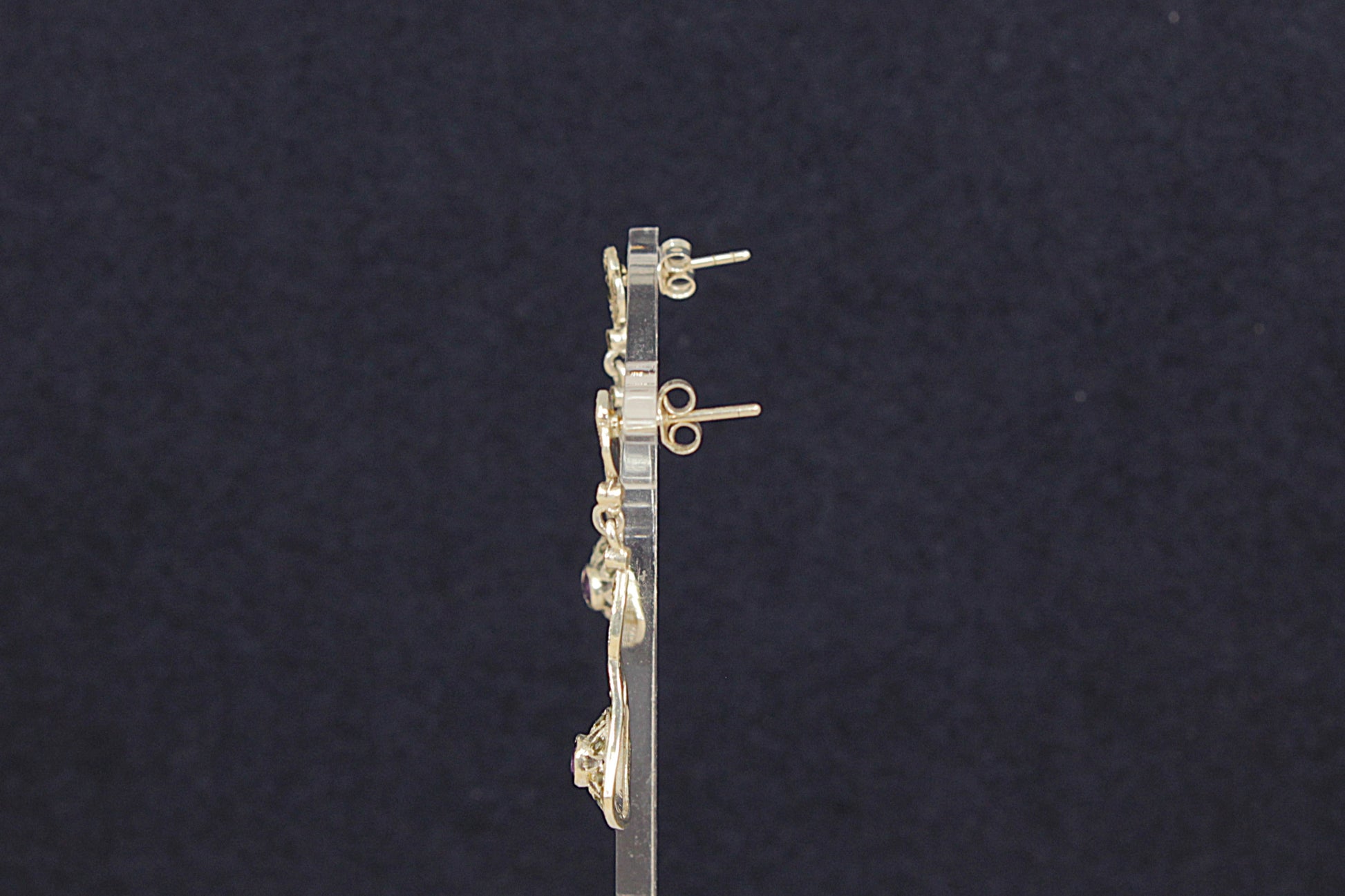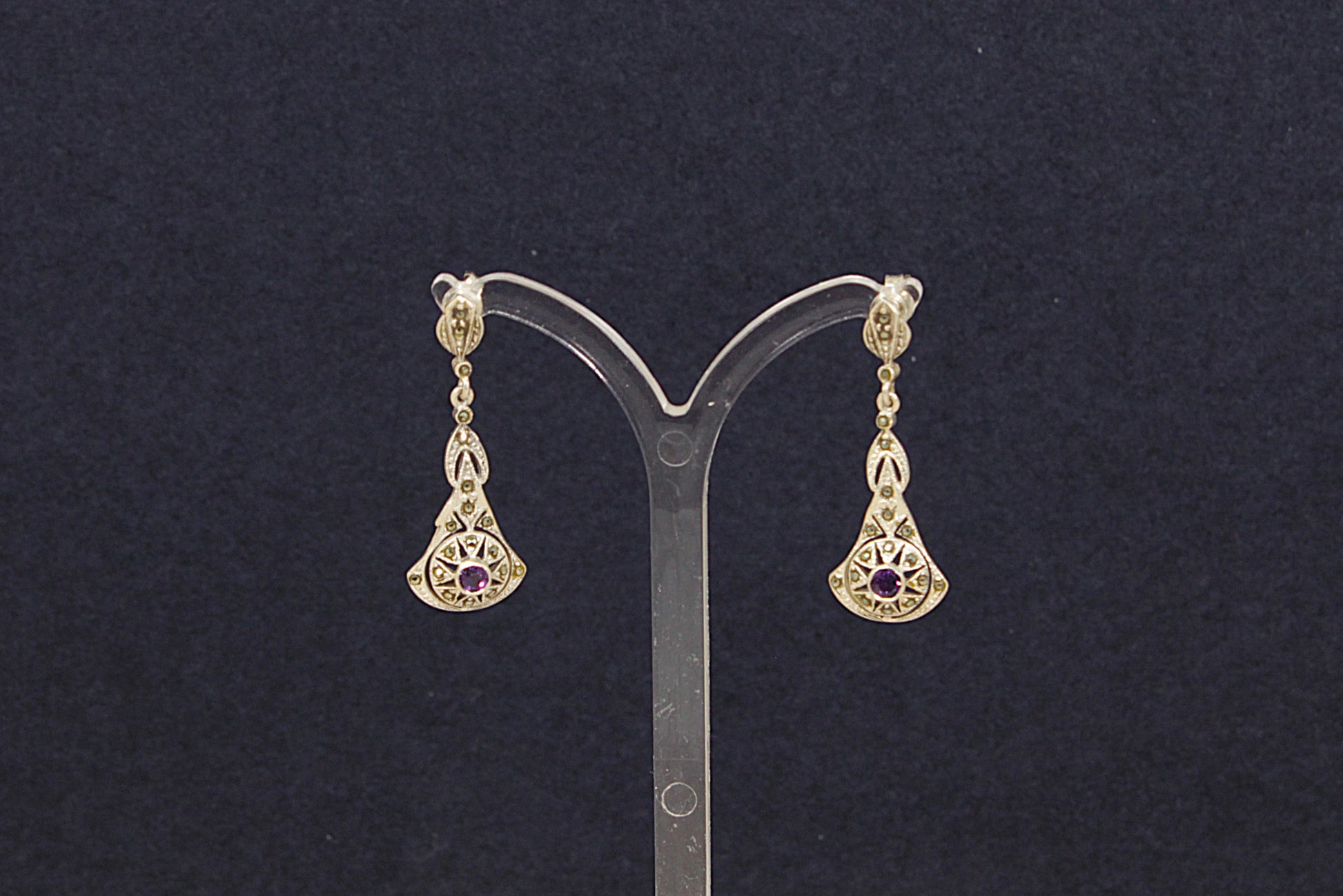 Silver Art Deco Style Marcasite and Amethyst Drop Earrings