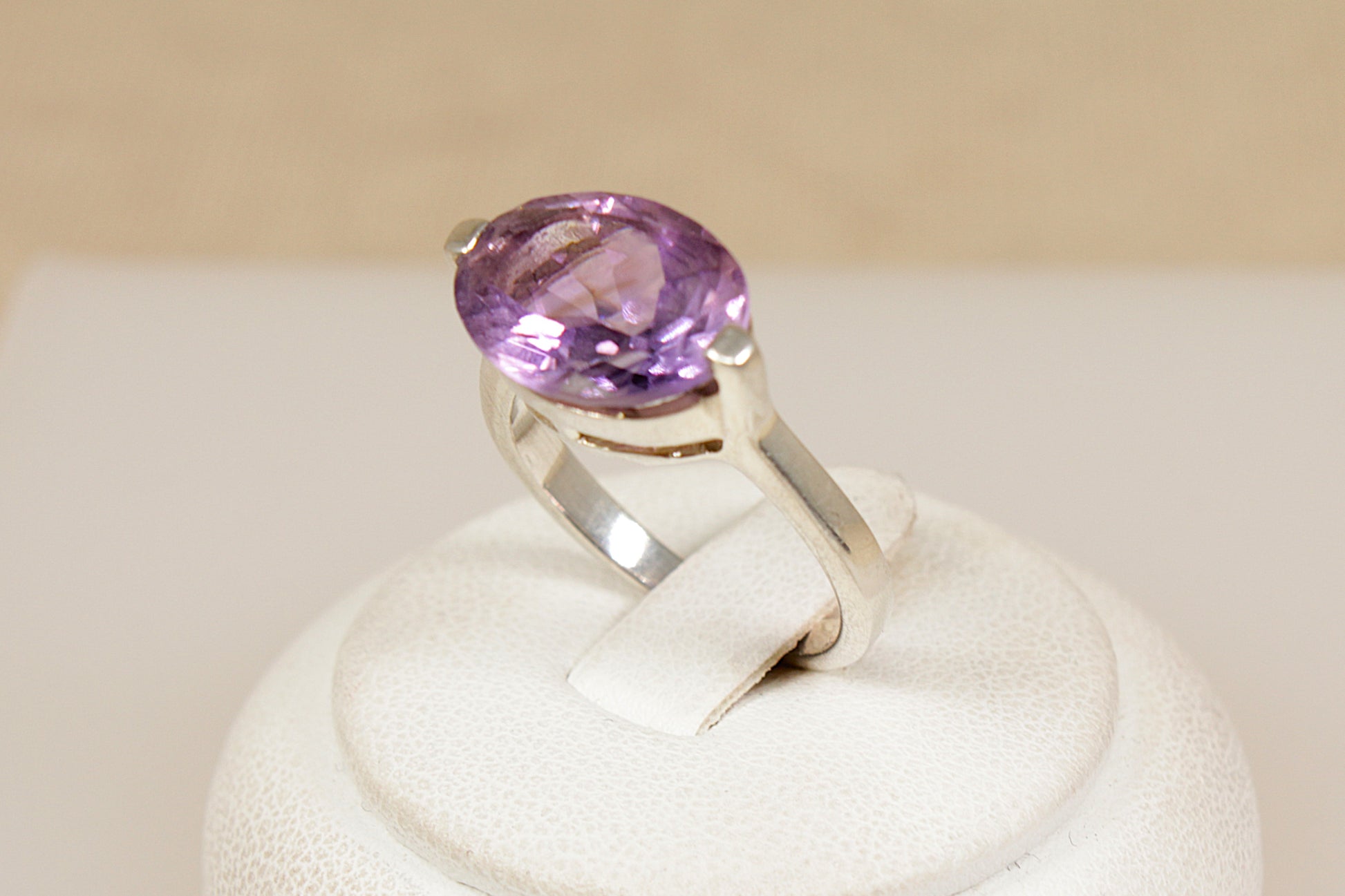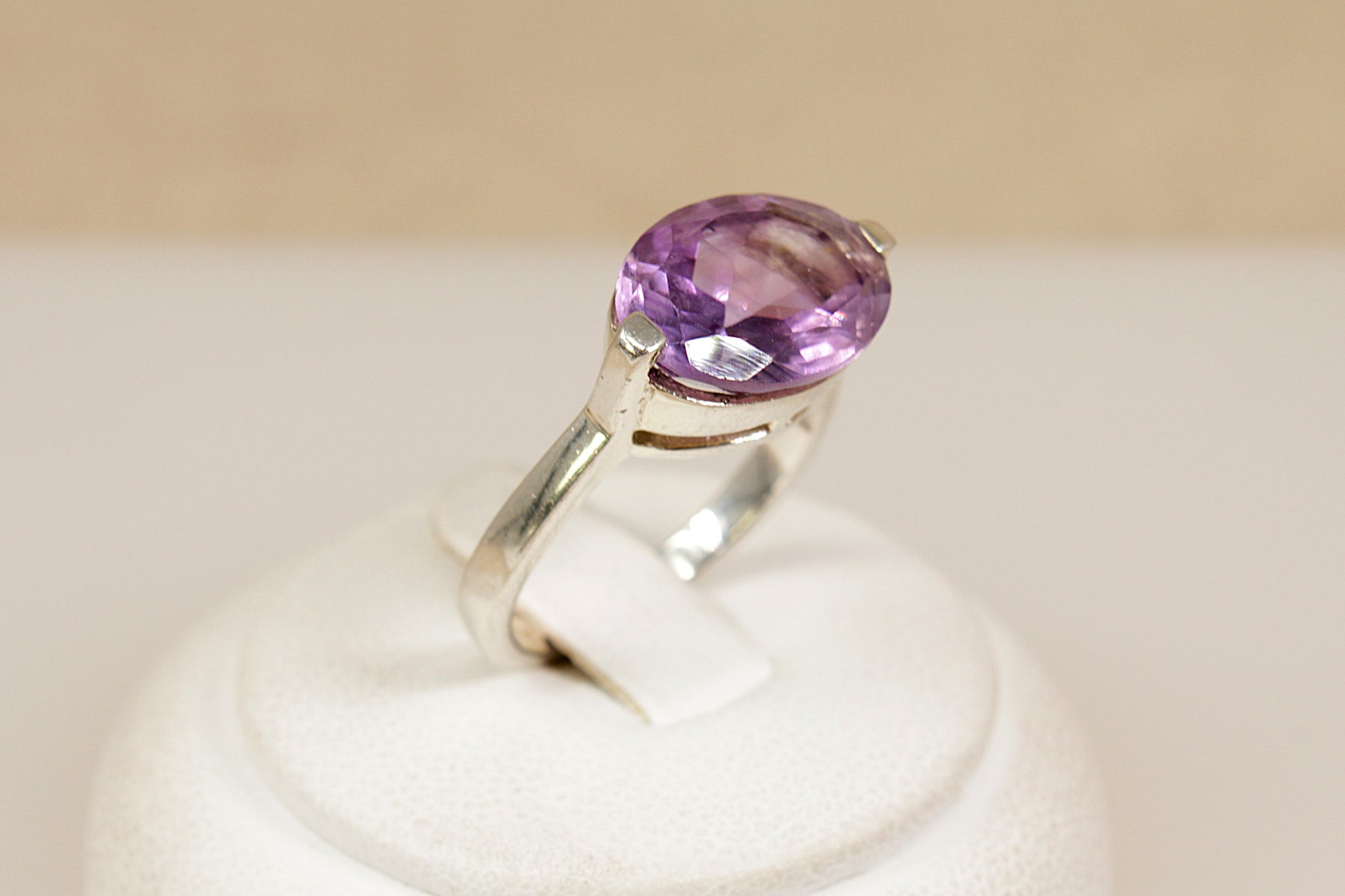 Silver Amethyst Solitaire ‘Elipse’ Ring