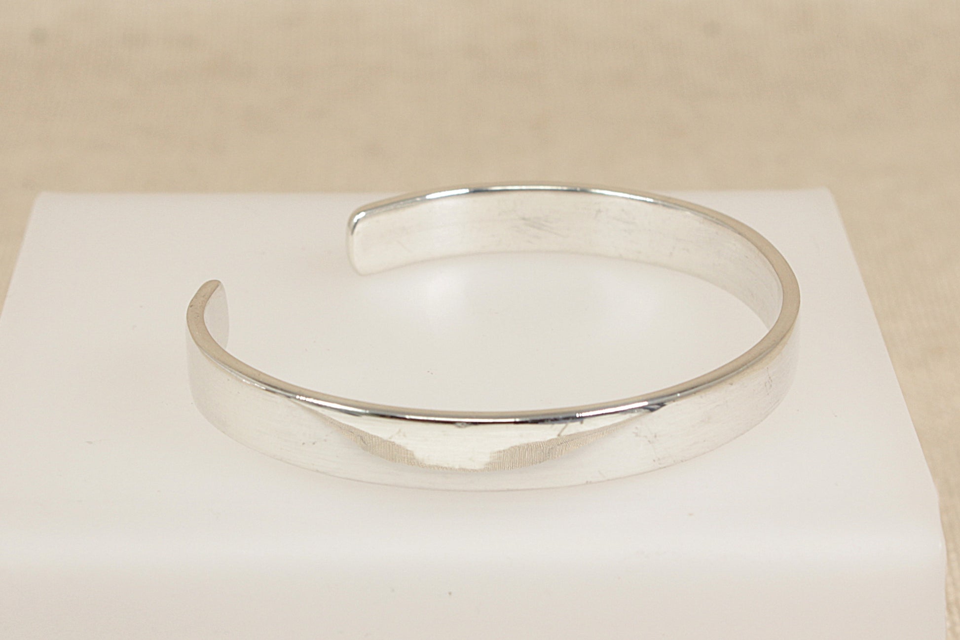 This simple yet stylish Silver tension bangle exudes understated elegance. Smoothly polished with a consistent depth and rounded edges at the opening, it offers a comfortable and refined fit.