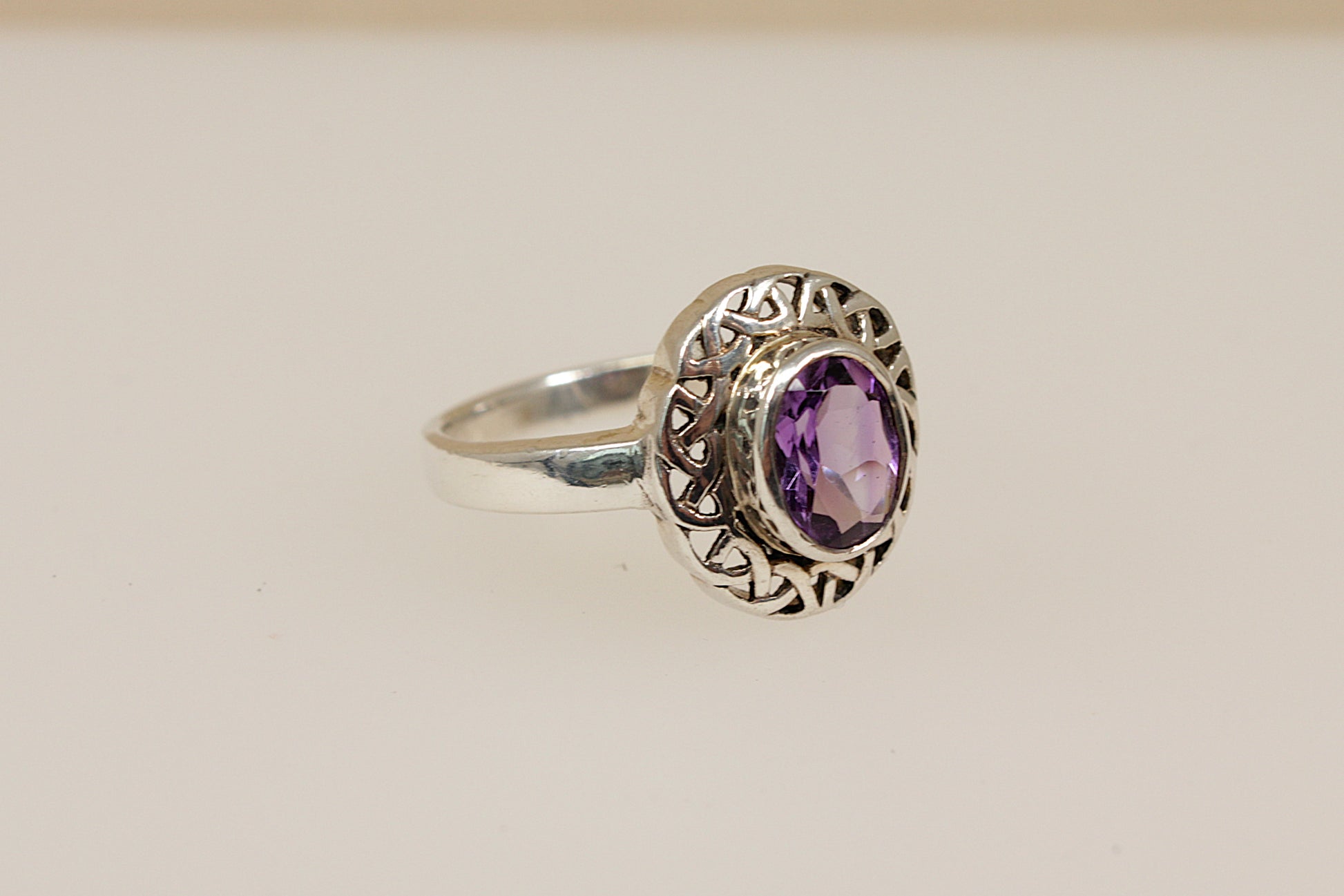 Silver and Amethyst Celtic Knot Ring