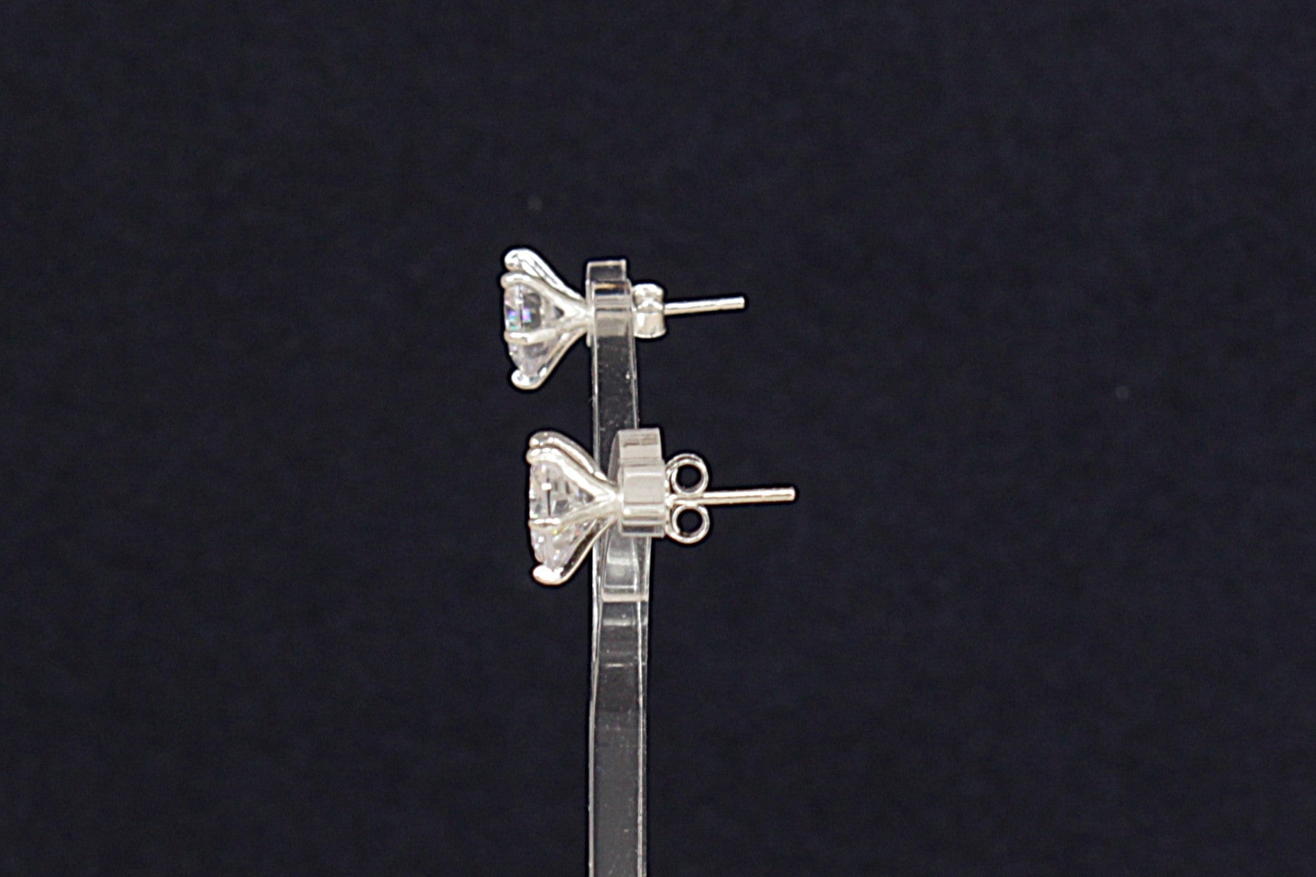 A bold and eye-catching pair of Sterling Silver CZ stud earrings, each featuring a brilliant round faceted claw-set cubic zirconia gemstone that sparkles beautifully in the light mimicking a real diamond. The gemstones are securely set to catch every glimmer and create a classic, elegant look suitable for both day and evening wear. Finely crafted and stamped 925, these earrings offer timeless style and radiant sophistication.