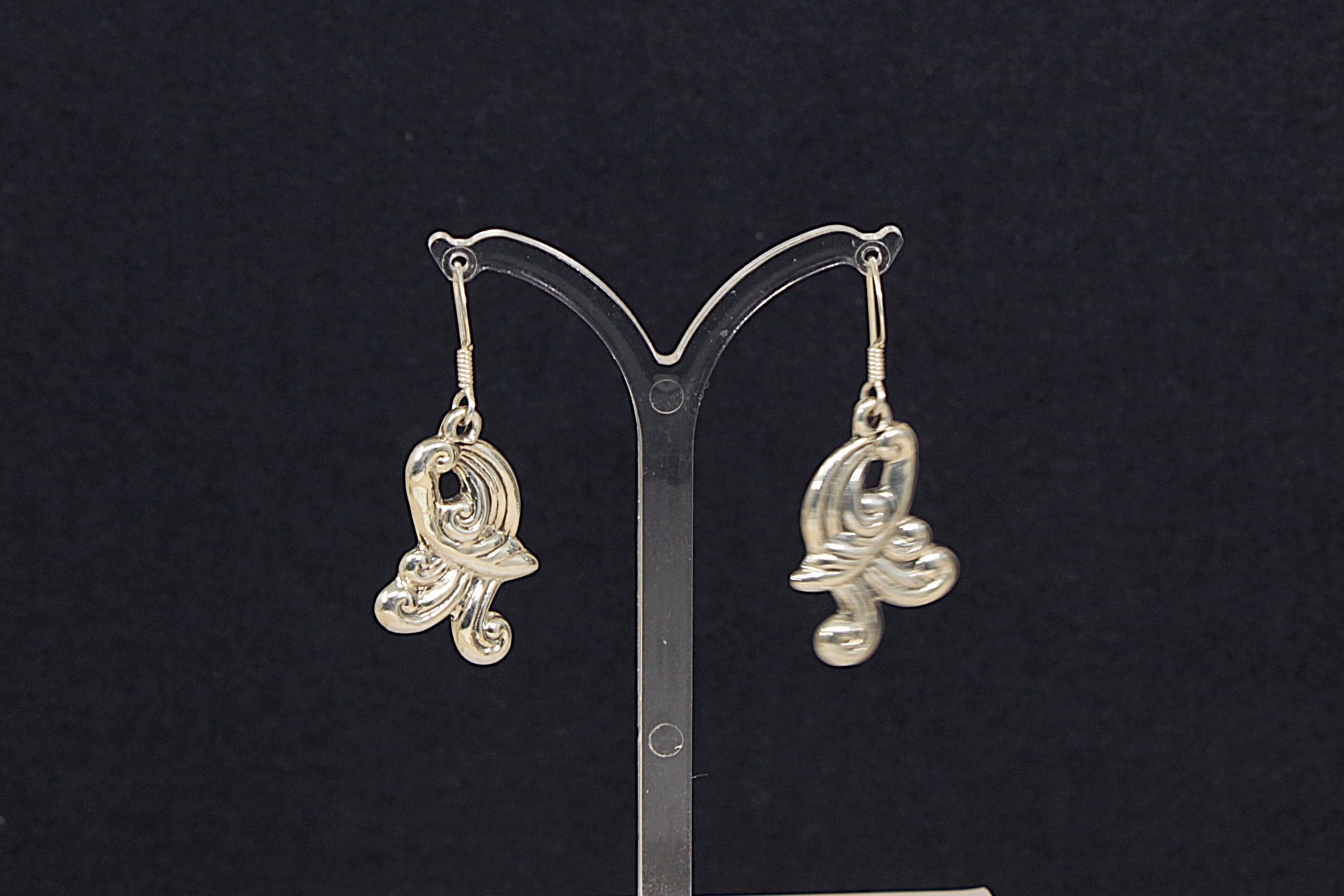 These stunning handcrafted Mexican Silver dropper earrings feature a bold swirl and swag design that catches the light beautifully.