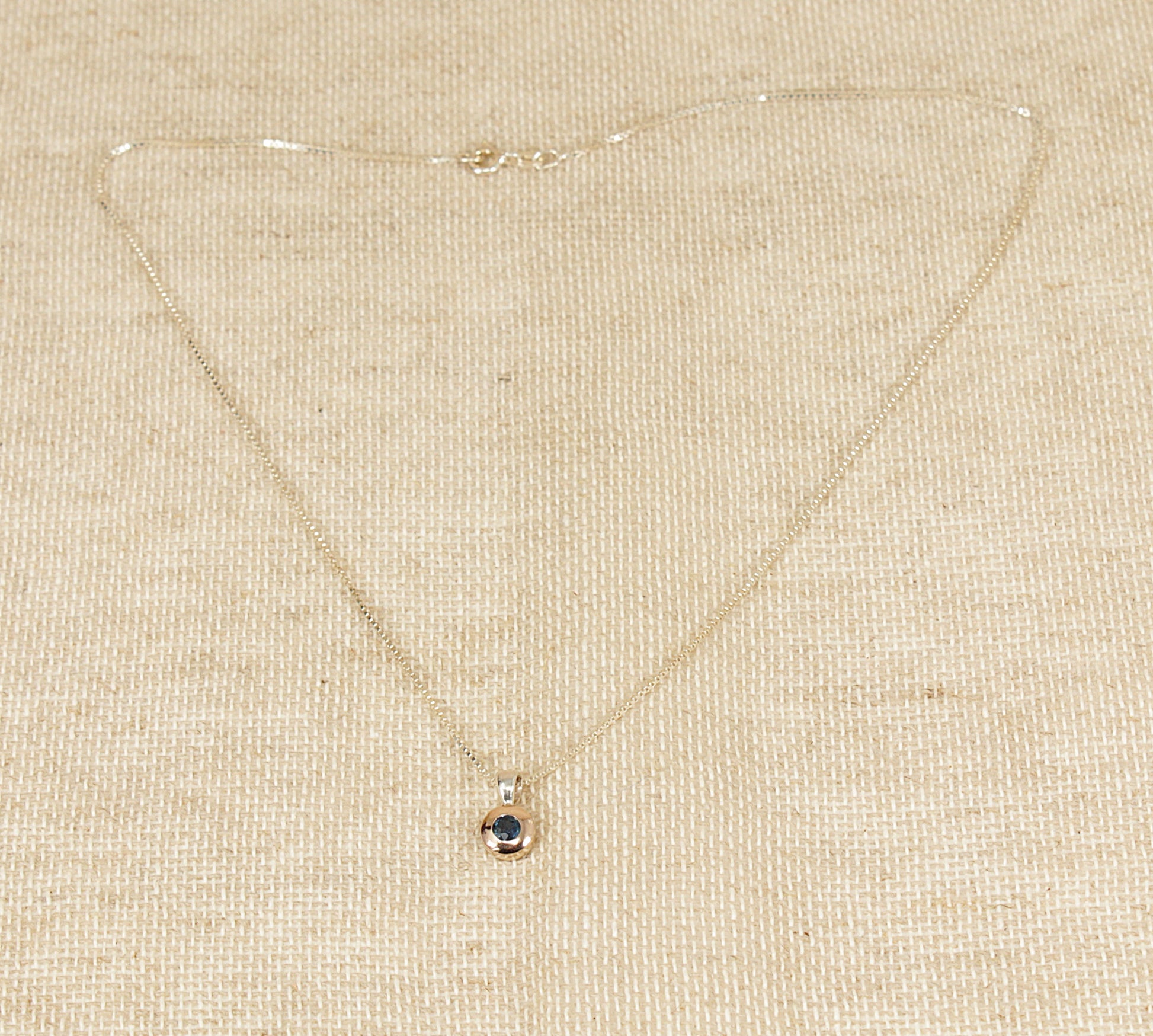 This charming Silver Sapphire pendant features a beautiful round-cut cornflower Blue Sapphire, set in a slightly domed smooth halo bezel setting that enhances the colour and brilliance of the gemstone.