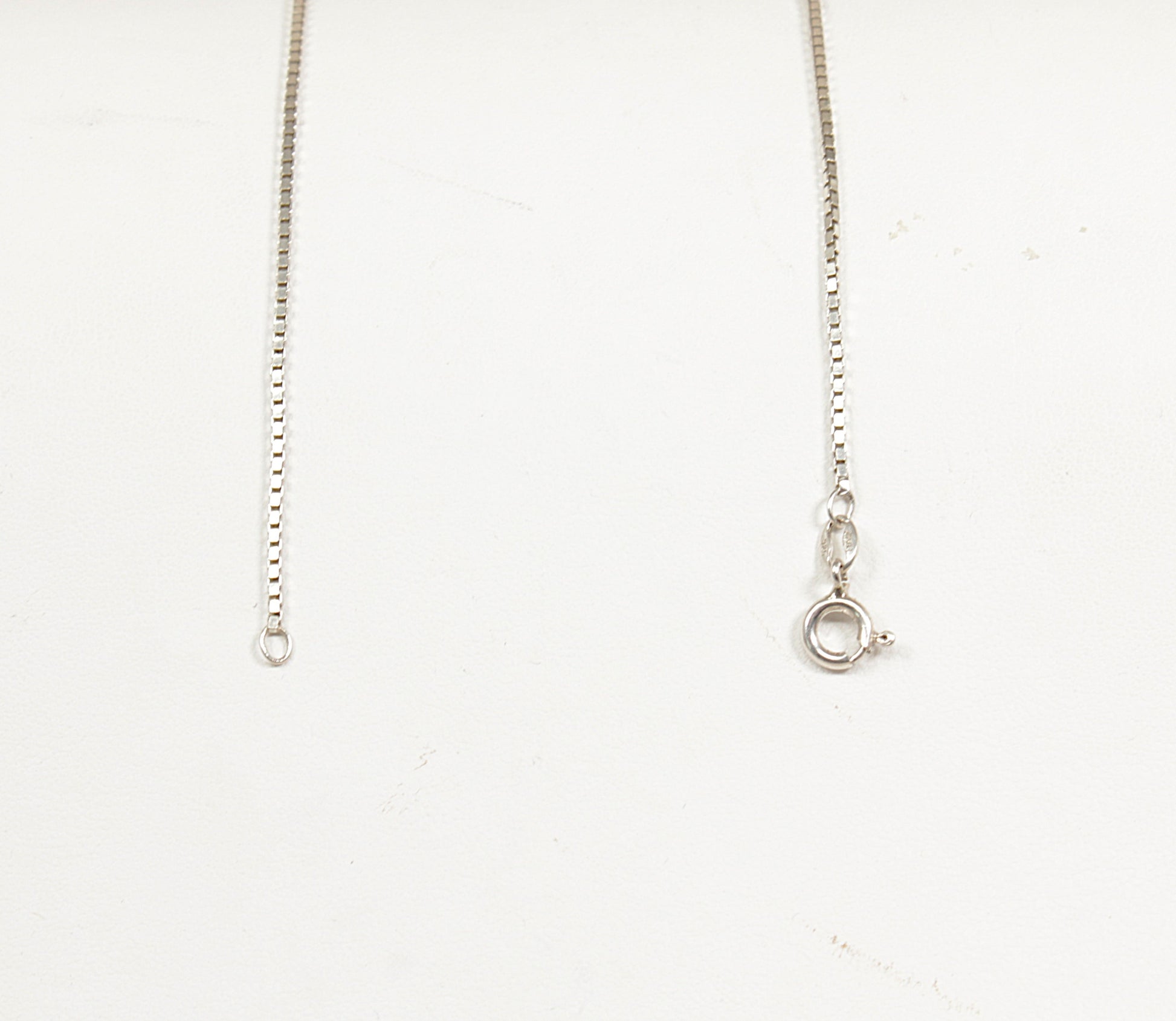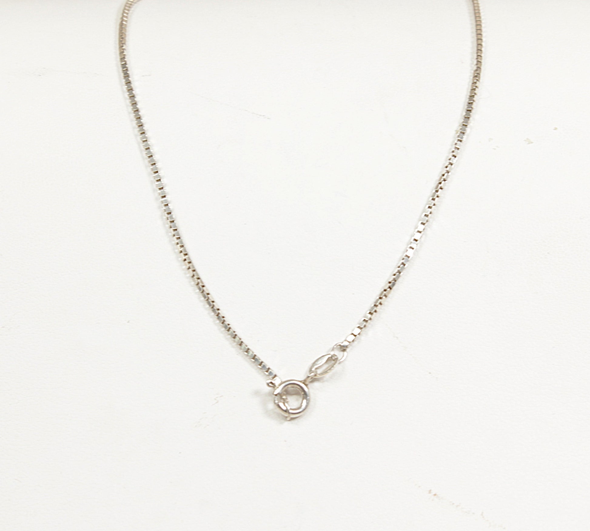 The pendant has a subtle domed shape, giving it lovely depth and dimension. Stamped 925 for sterling silver, sitting on an Italian silver box chain stamped ITALY, completing this elegant and romantic piece.