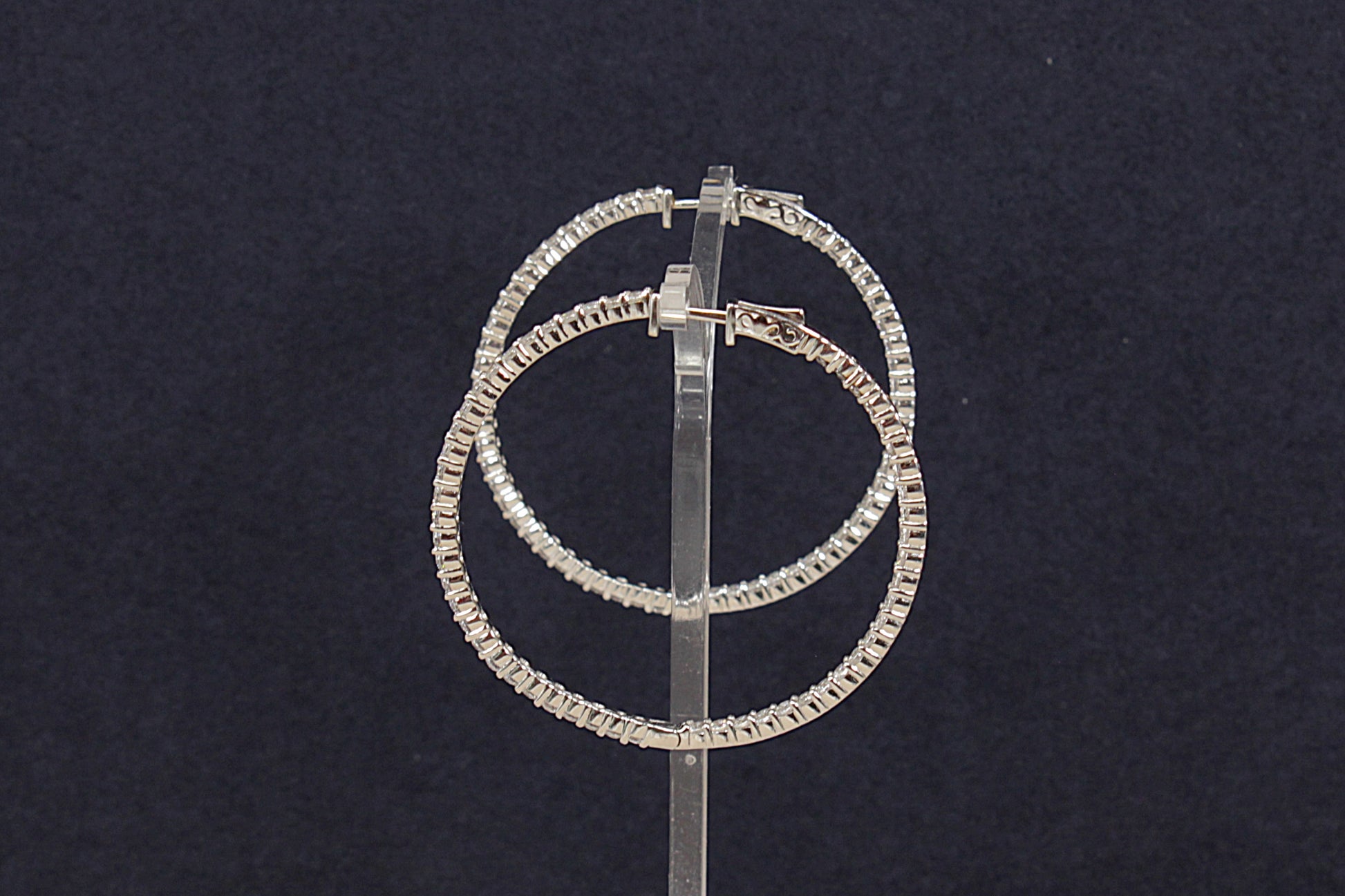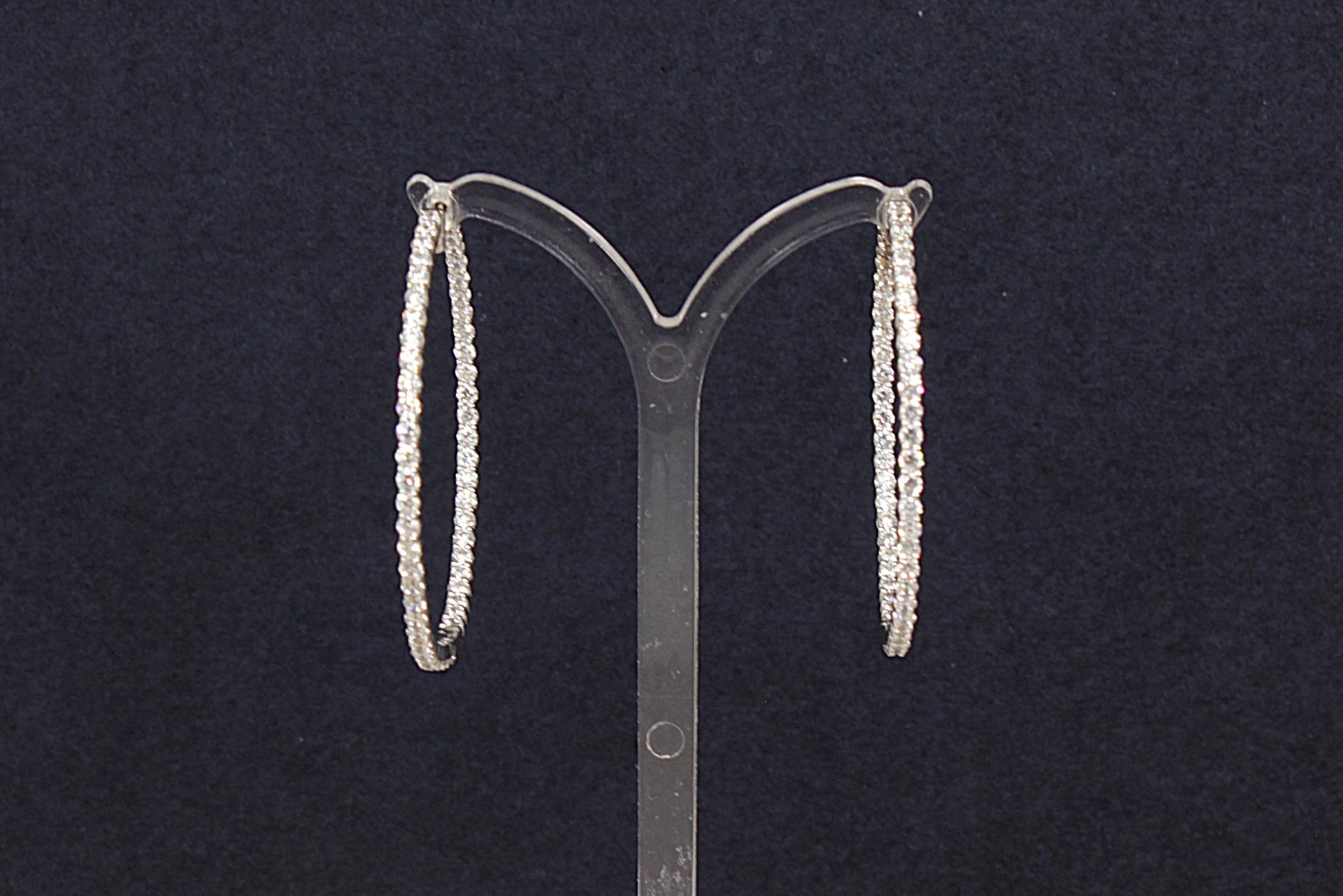 These impressive Silver and Crystal large hoop earrings are designed to catch the light from every angle. Each hoop is adorned with sparkling crystals set along the outer front half and inner back half, creating maximum brilliance and a captivating shimmer with every movement. Crafted from sterling silver and stamped 925, these elegant statement earrings combine timeless style with a dazzling modern edge.