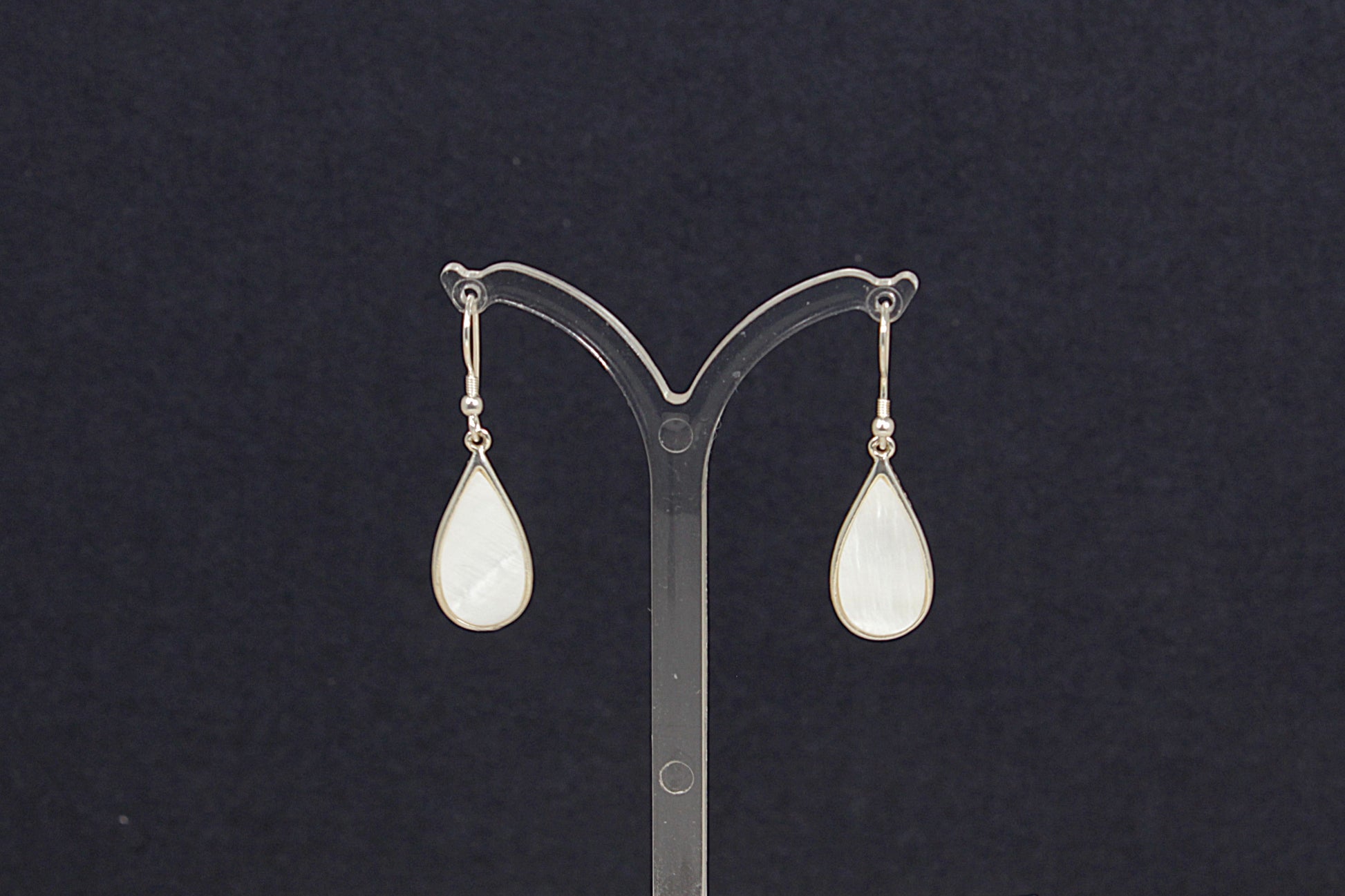 These pretty Silver and Mother of Pearl drop earrings feature elegant teardrop-shaped pieces of MOP, each piece of MOP is bezel set in silver for a soft, luminous look.