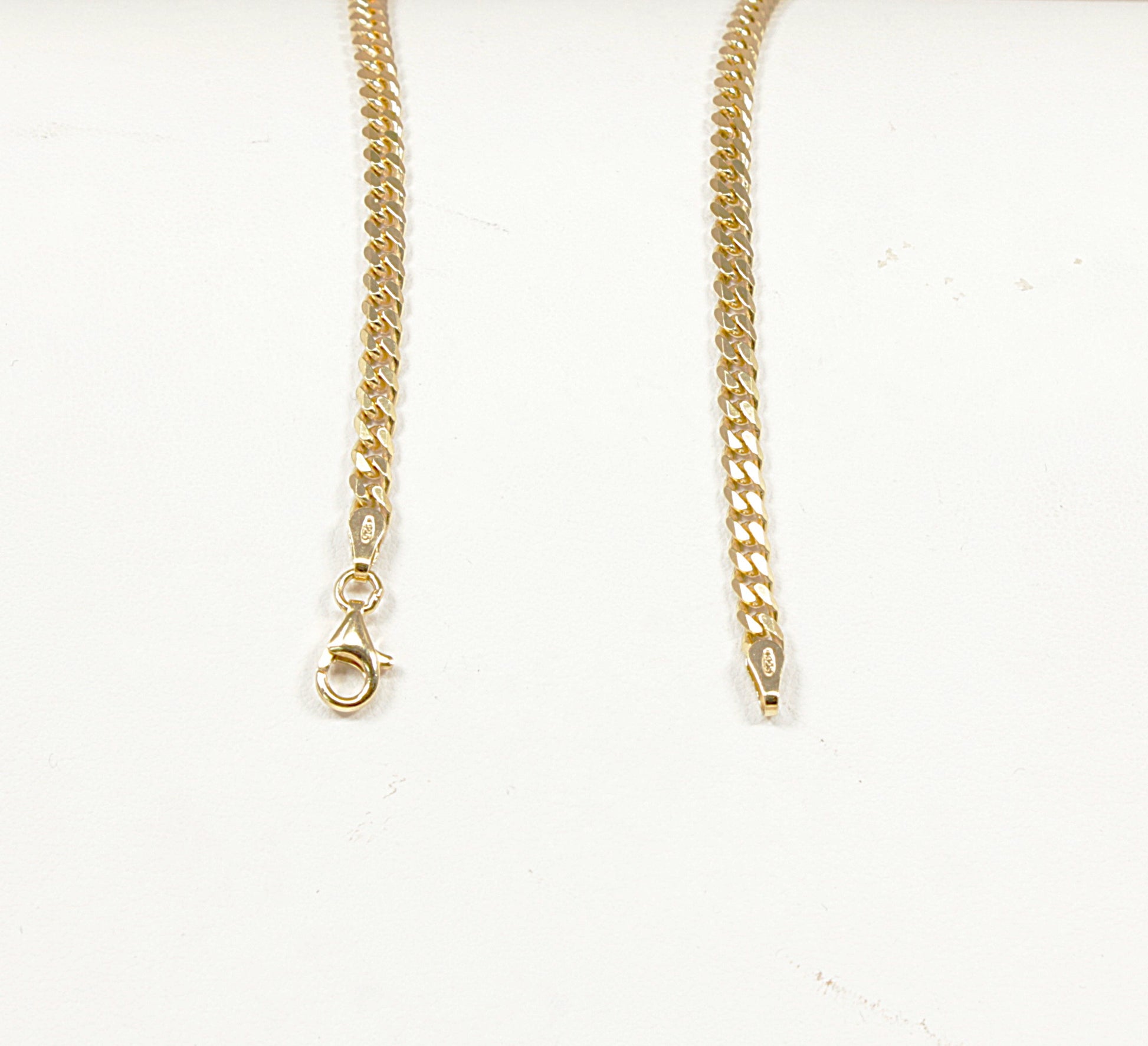 A classic Silver Gilt flat curb link necklace chain, crafted in excellent quality silver gilt that offers the luxurious look of gold at a fantastic value.