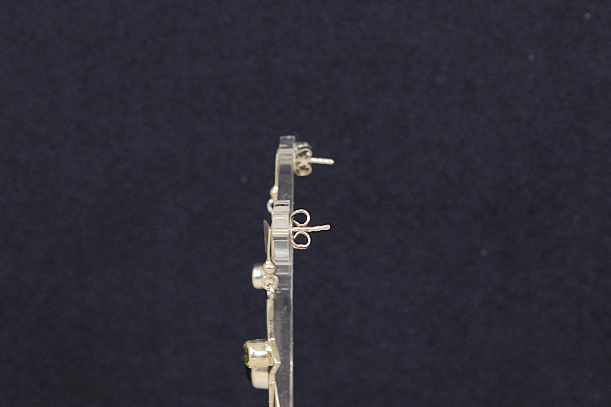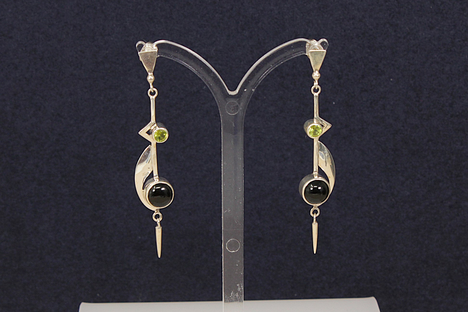 Silver Modernist ‘Studio’ Design Peridot and Onyx Earrings