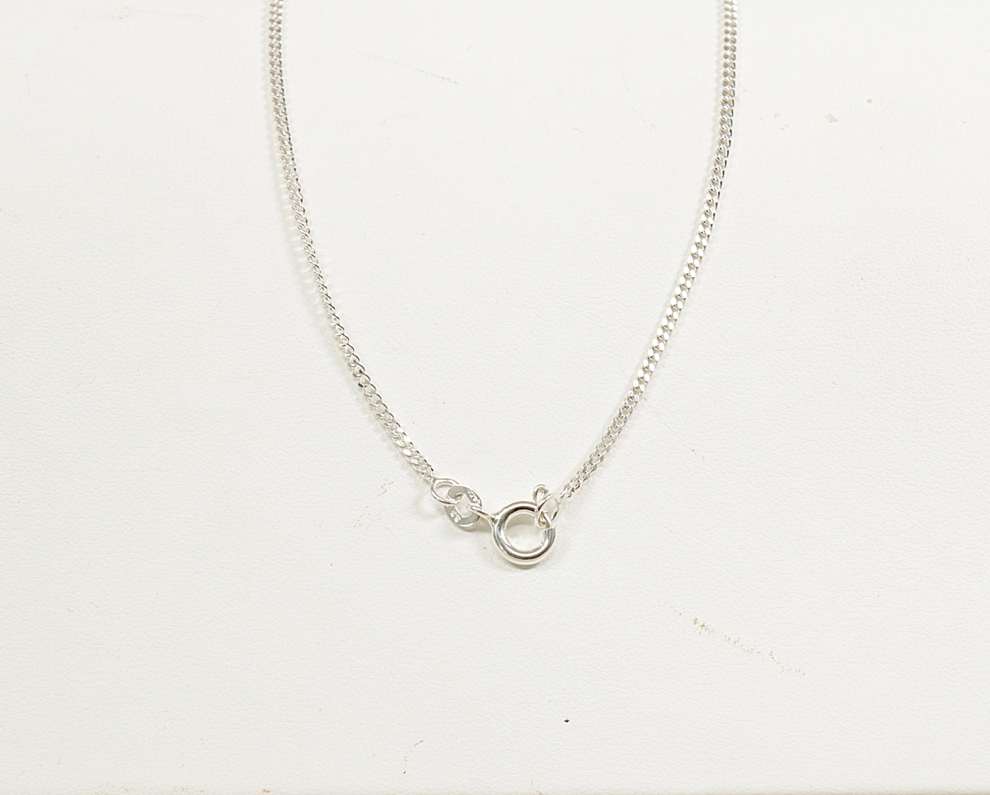 The stone is set in an open basket four-claw setting, allowing light to illuminate its rich blue tones from every angle. It sits elegantly on a 16-inch silver flat curb link chain, offering a sleek and timeless look. The piece is stamped 925 for silver and bears the maker’s mark S & Co, a testament to its fine craftsmanship and quality design.