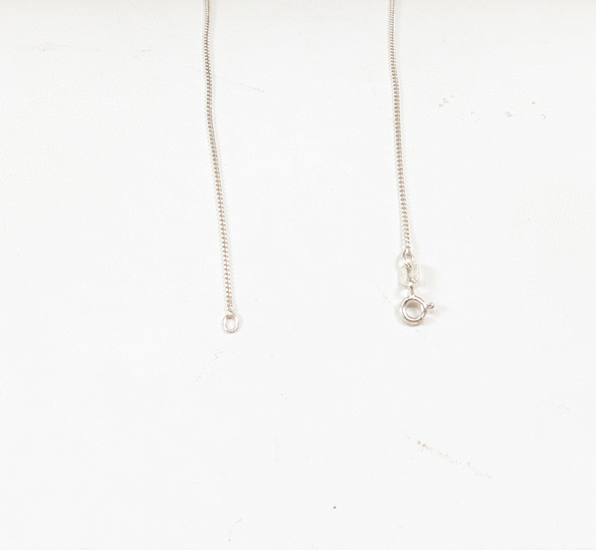 At the top of the pendant is a hidden integrated bail, through which the accompanying fine Silver curb chain passes, giving the piece a clean and seamless look.