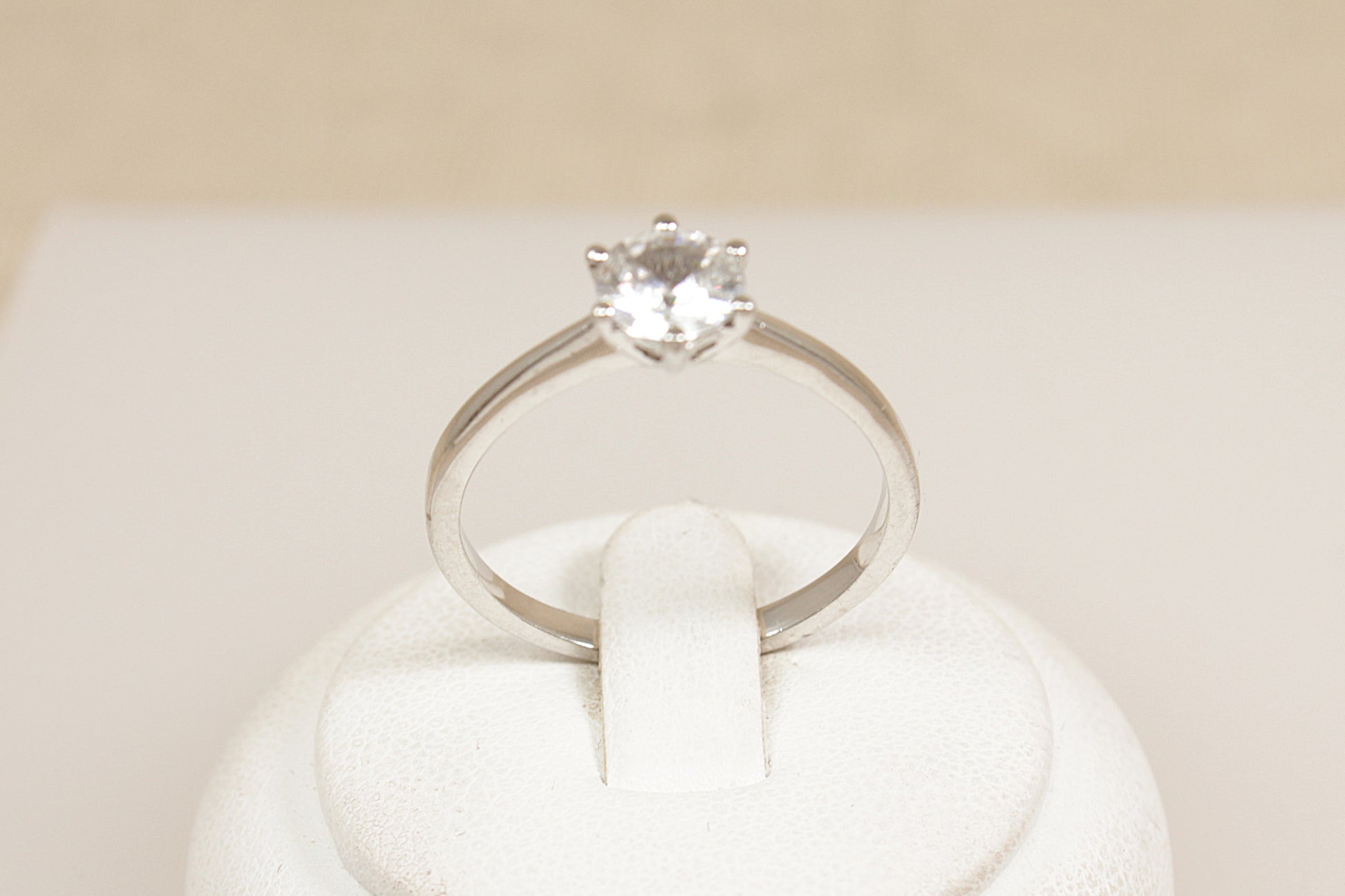 This dazzling Silver sparkly crystal CZ solitaire ring features a brilliant round-cut cubic zirconia that captures the light beautifully.
