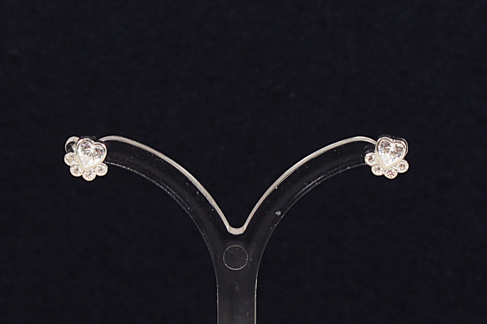 Silver Crystal Paw Print Stud Earrings