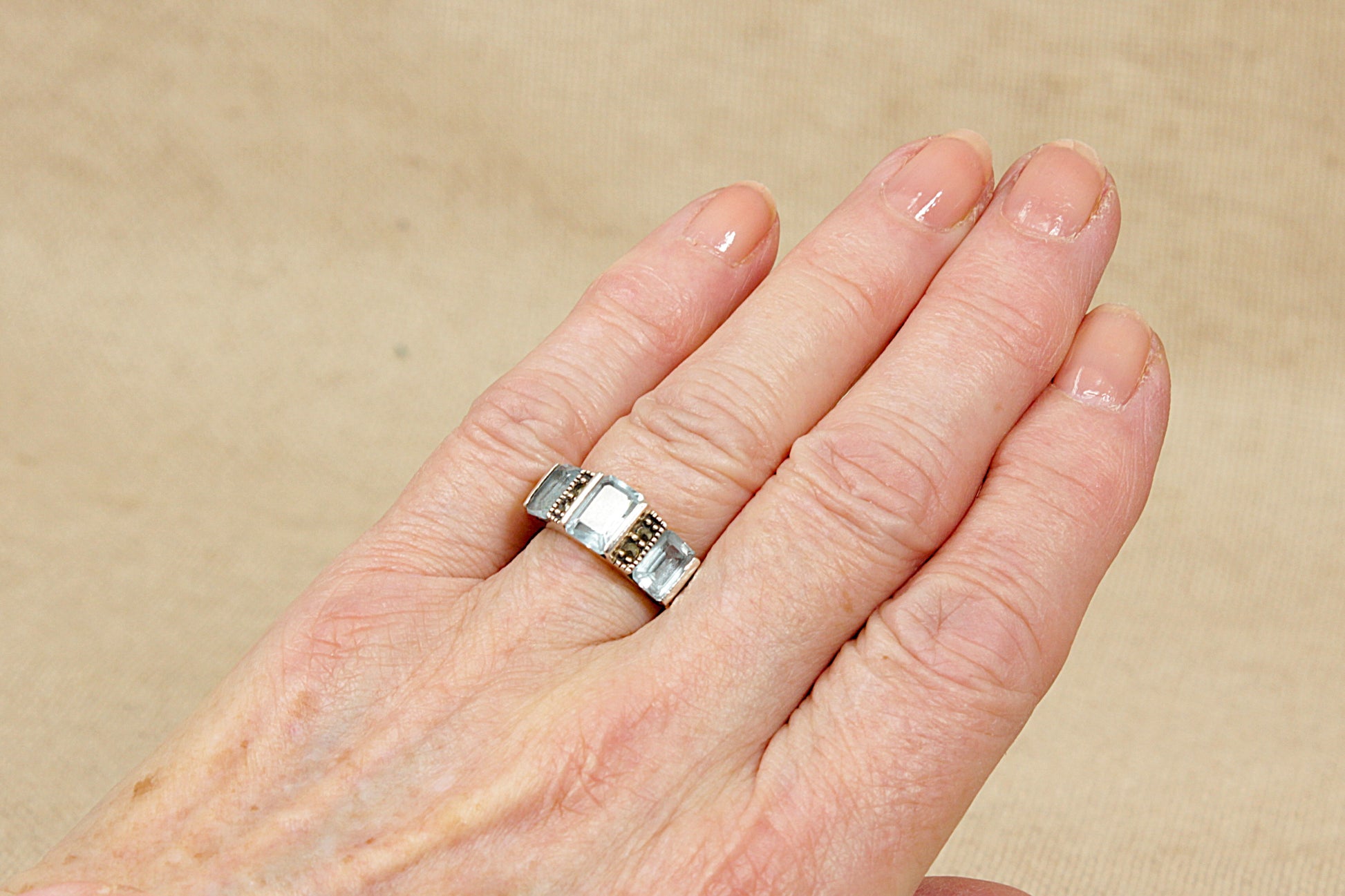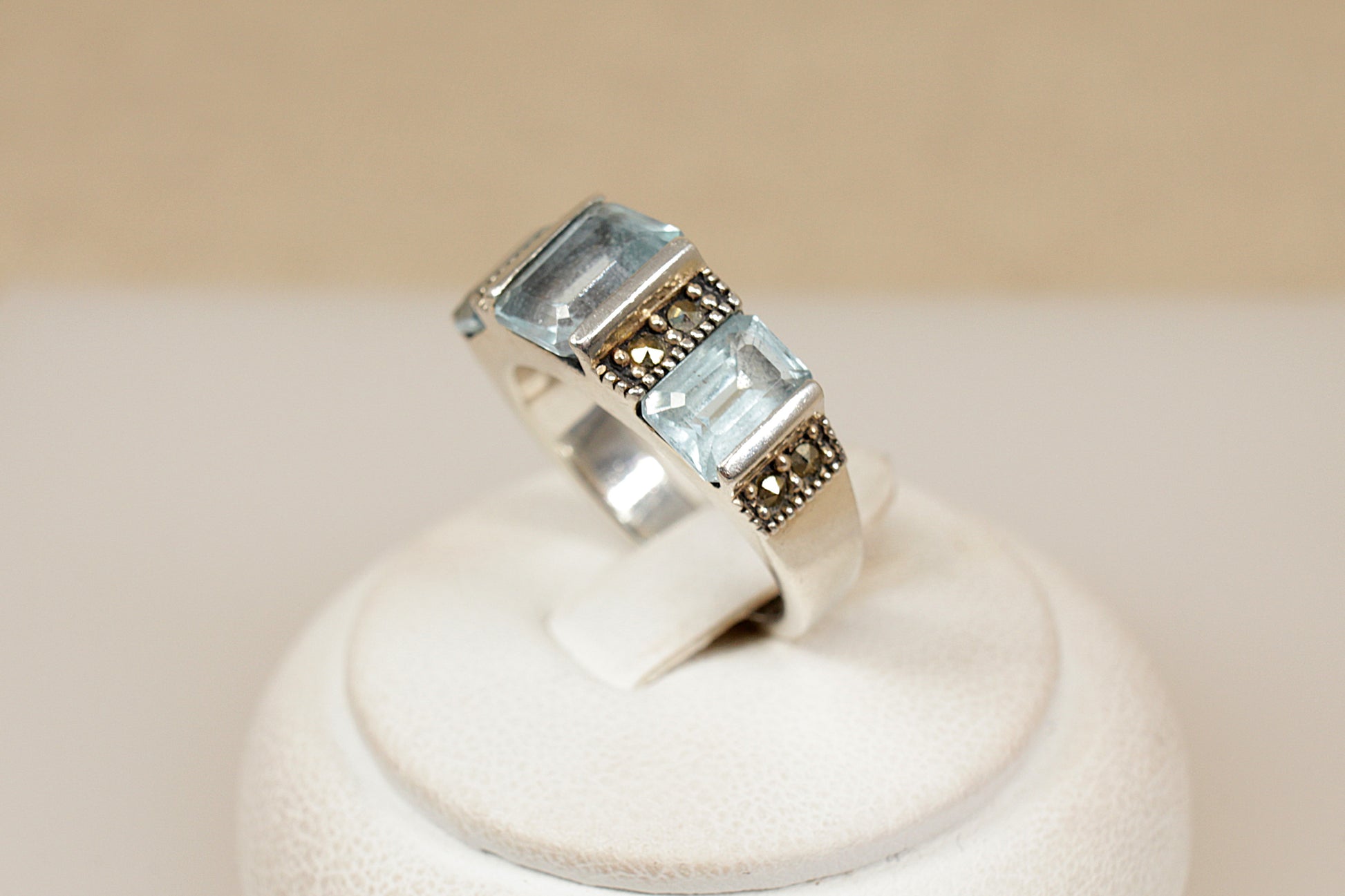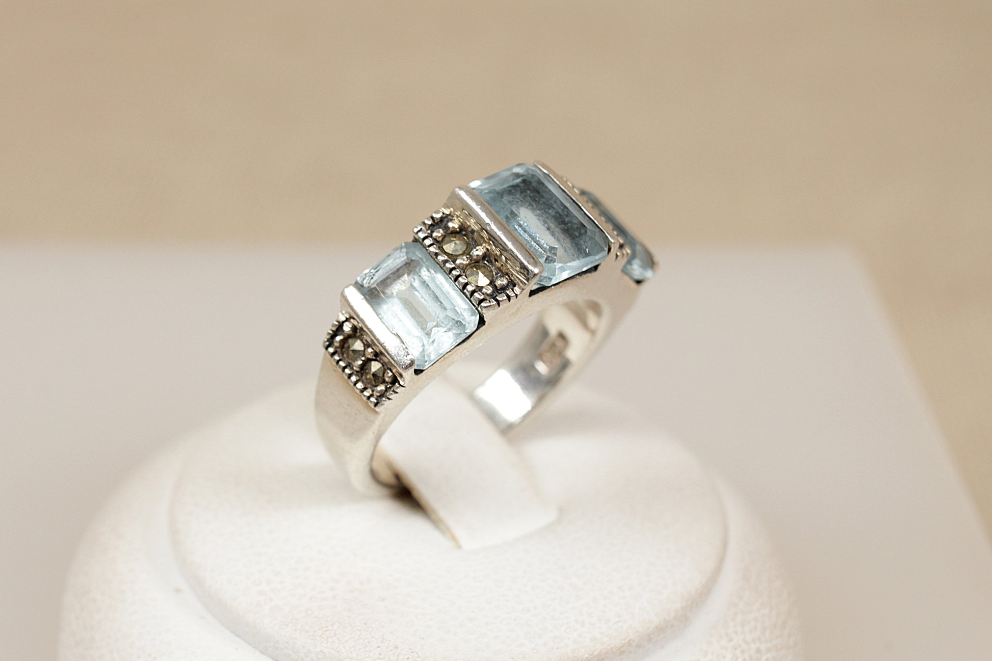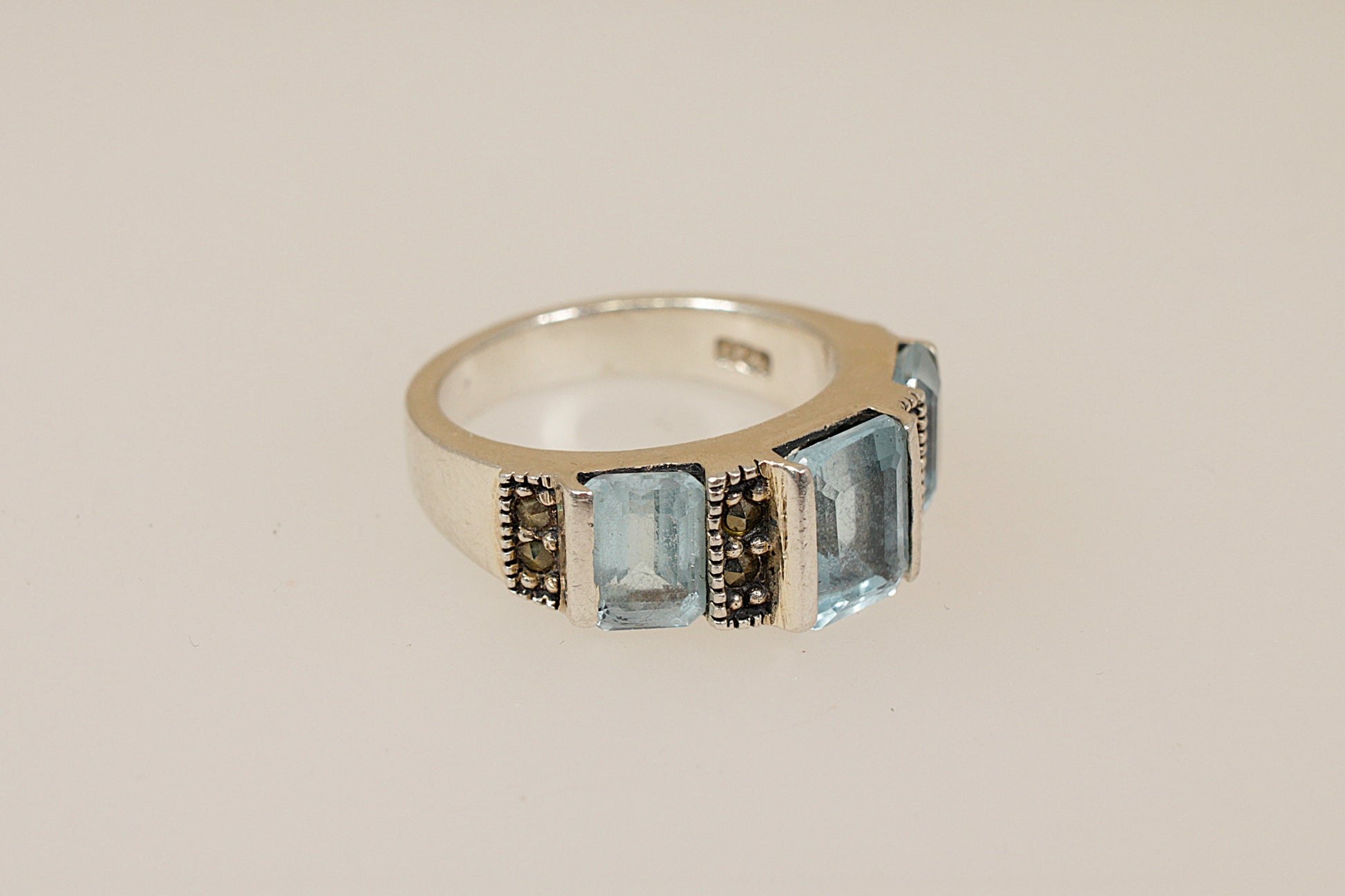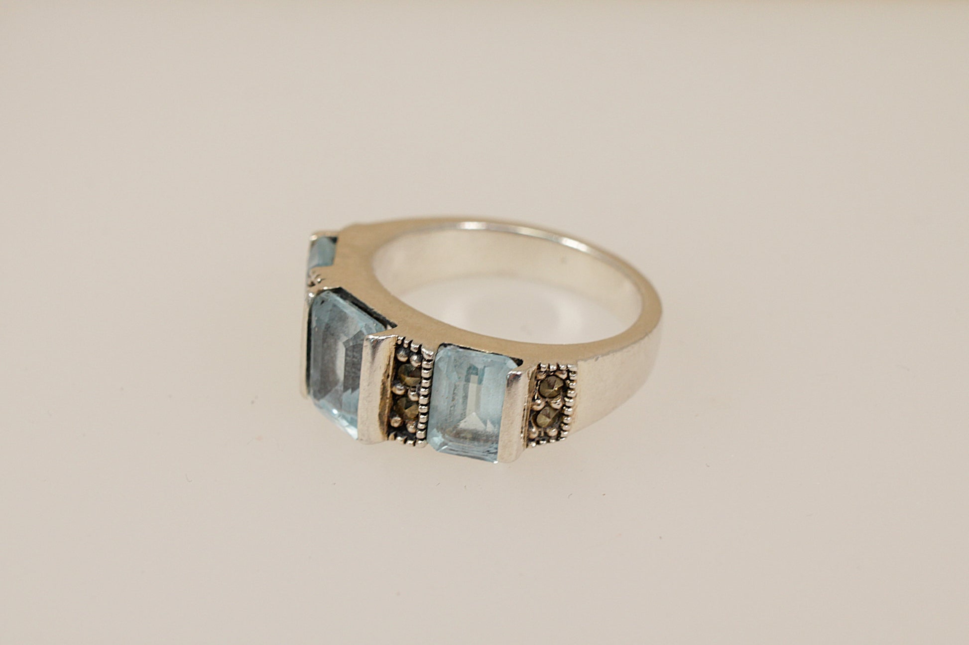 Silver Topaz and Marcasite Trilogy Ring