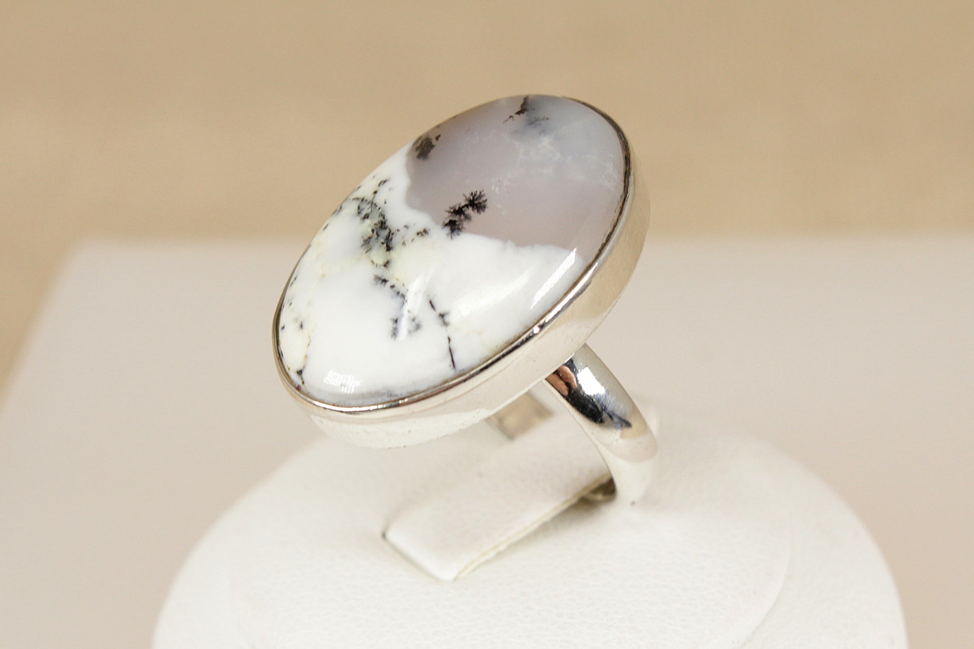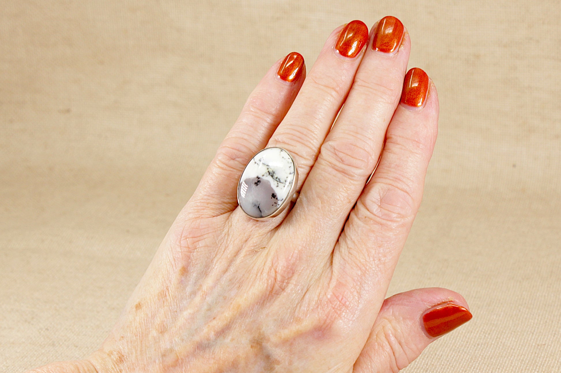 Sterling Silver Moss Agate Statement Ring