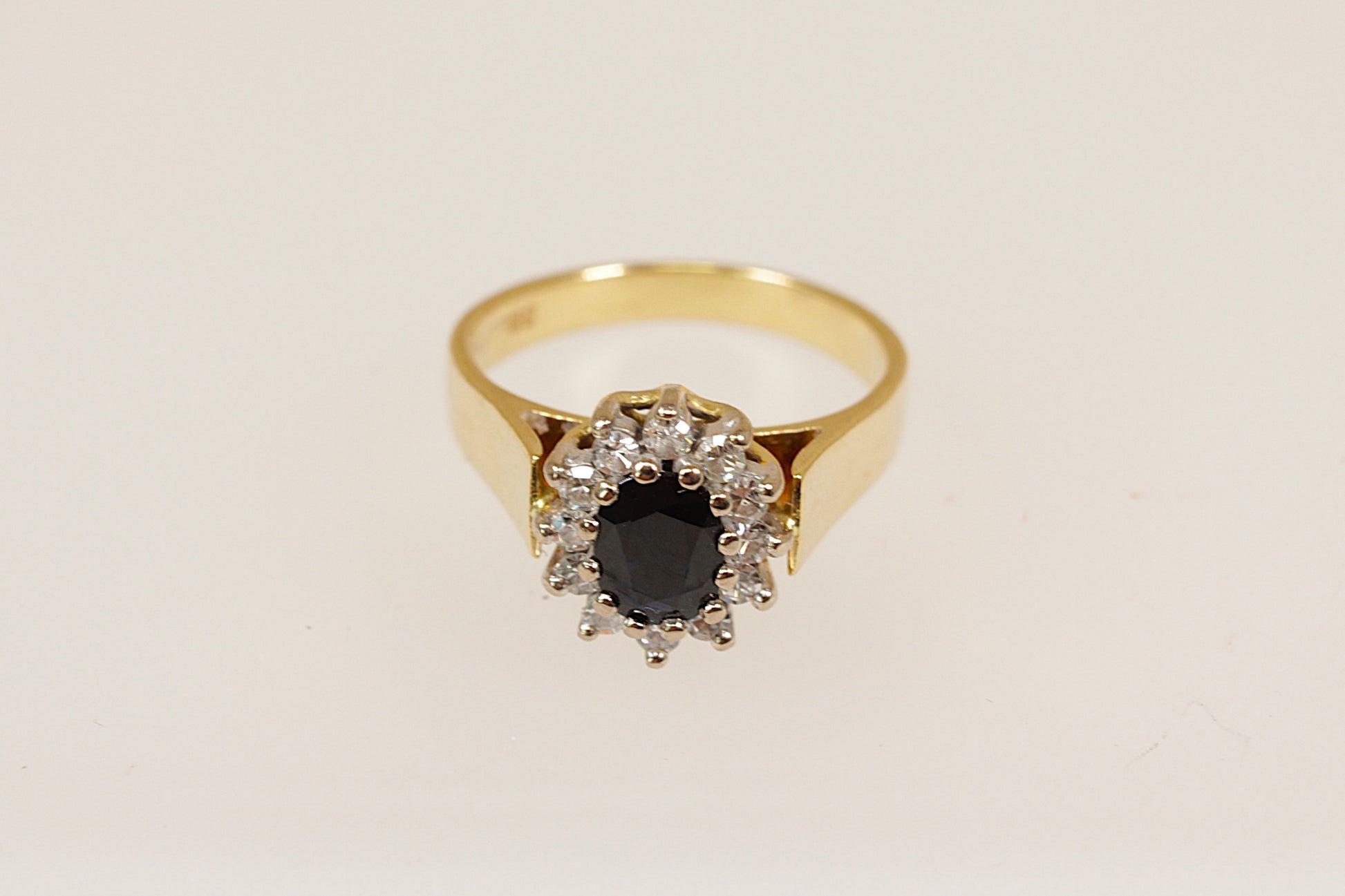 A beautiful and classic 18ct Sapphire and Diamond “Diana” style cluster ring, exuding timeless elegance.