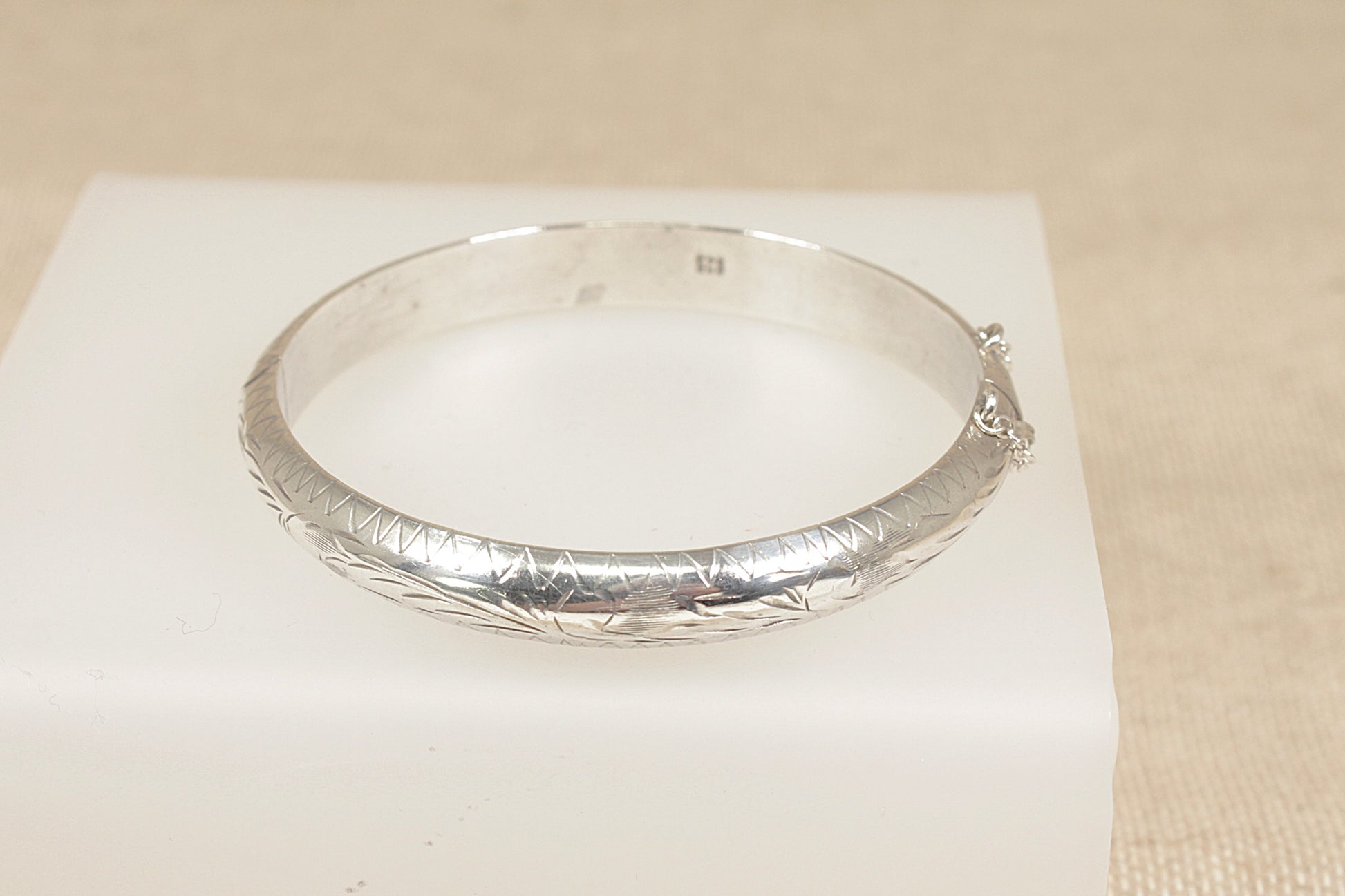 Inside the band, the bangle is stamped 925, confirming its sterling silver quality.