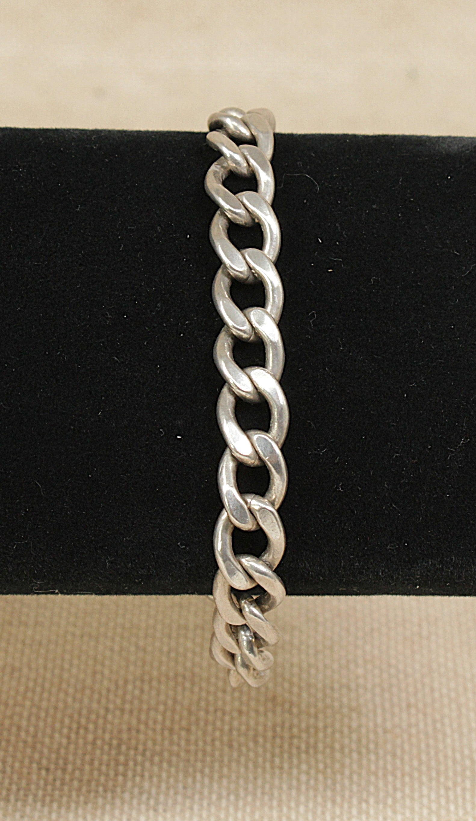 This is a beautiful vintage Silver piece! This Silver chunky flat curb link bracelet is a classic design, and in great condition with a padlock fastening, it also has a safety chain for extra security.