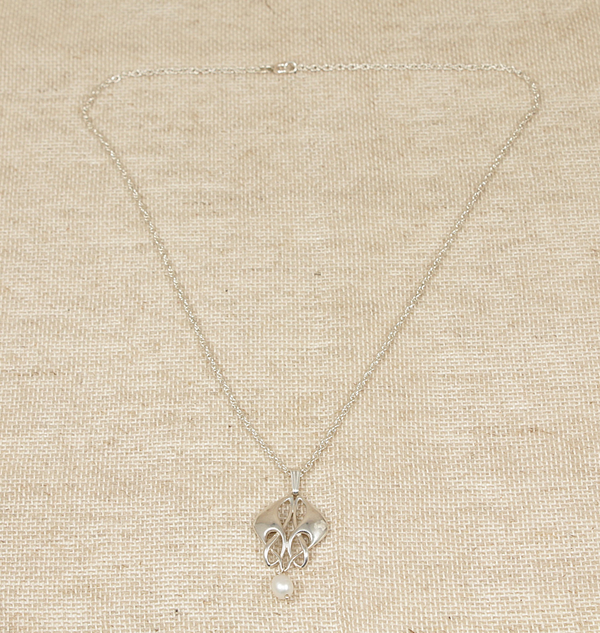 Silver Fresh Water Pearl Art Nouveau Style Pendant & Chain Necklace