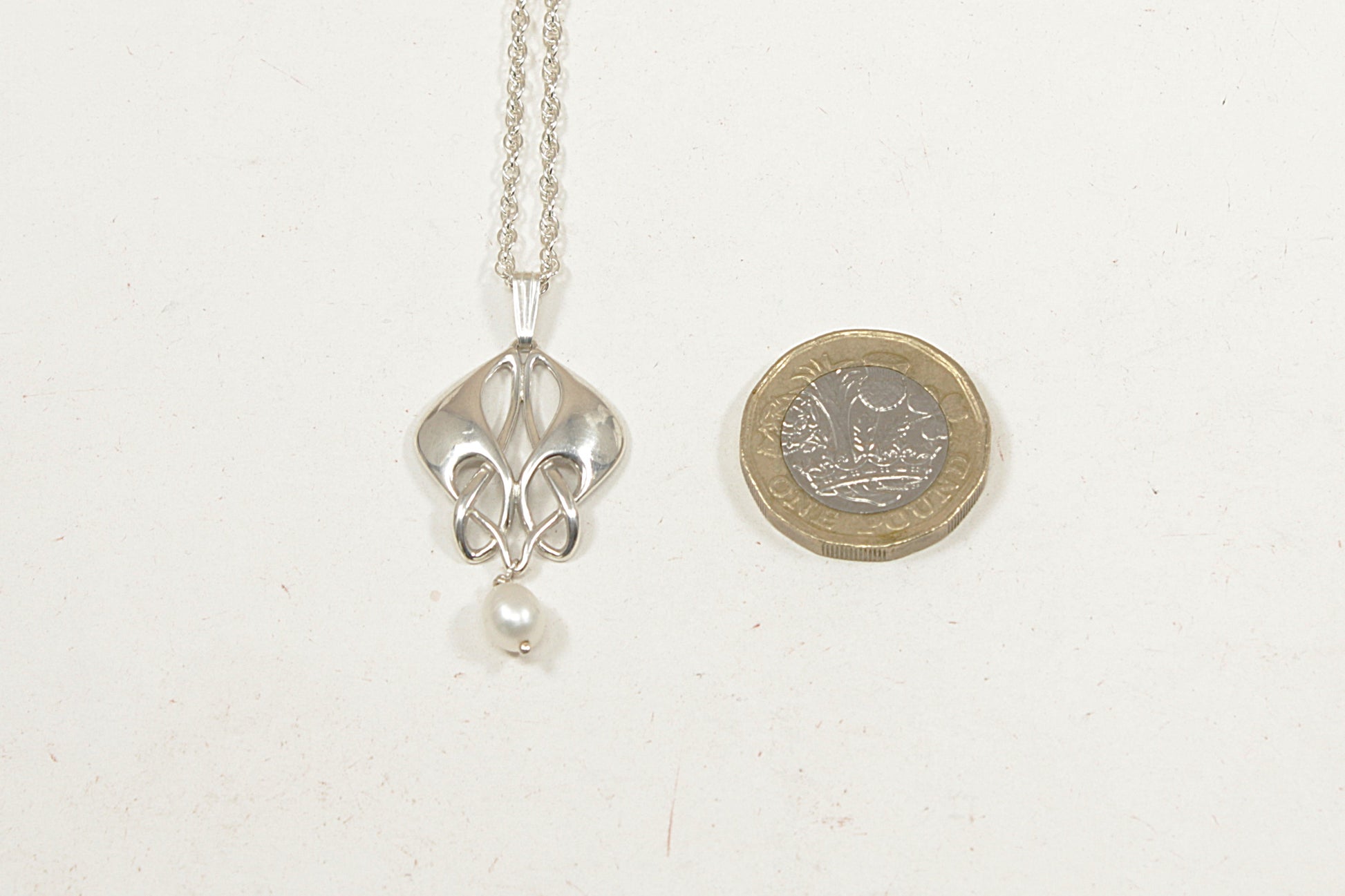 This elegant Sterling Silver pendant is designed in a flowing Art Nouveau style, featuring an intricate Celtic knot motif that adds a sense of heritage and symbolism.