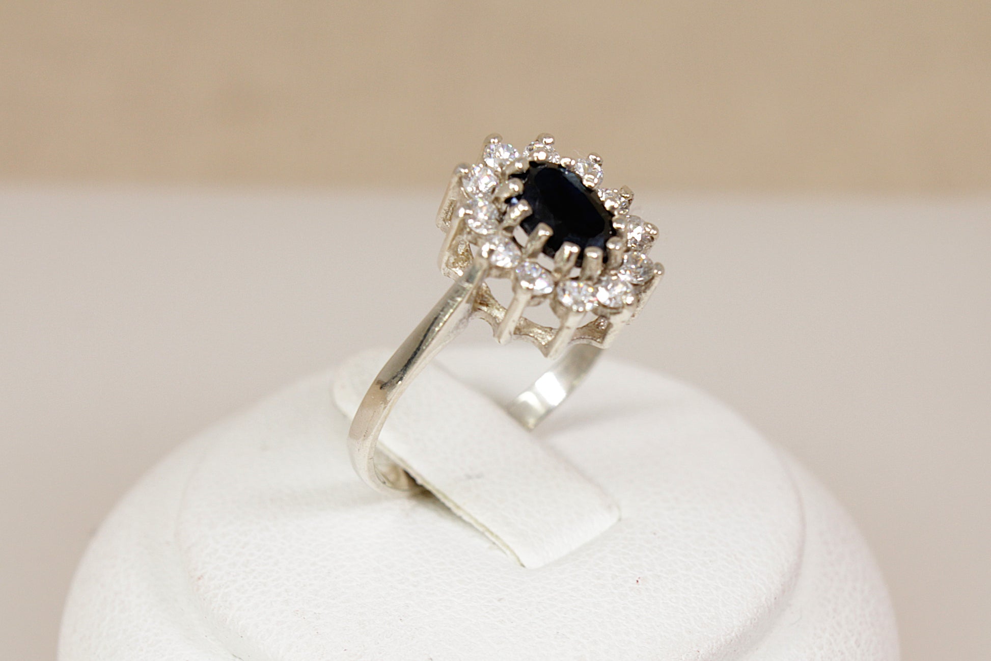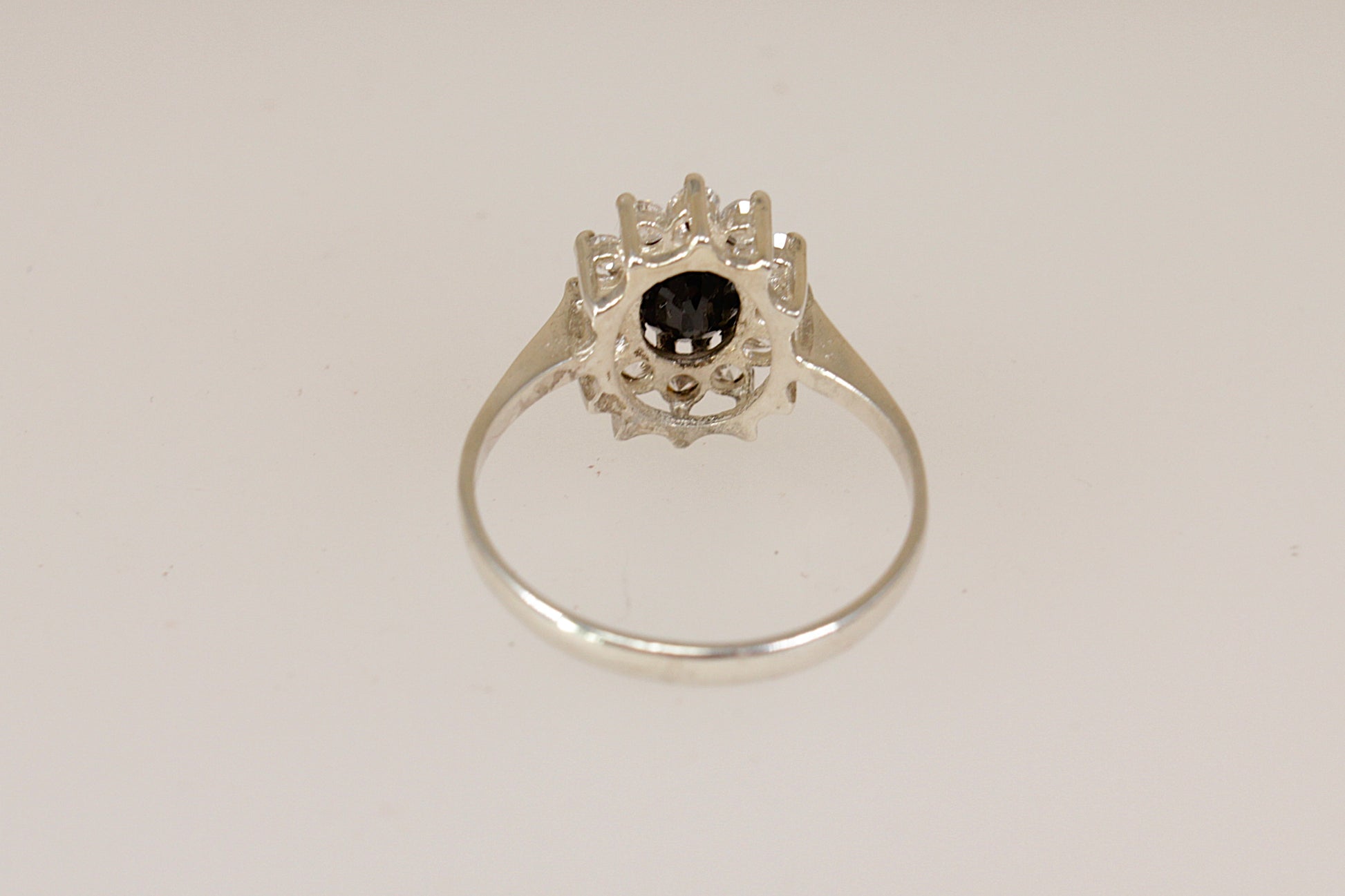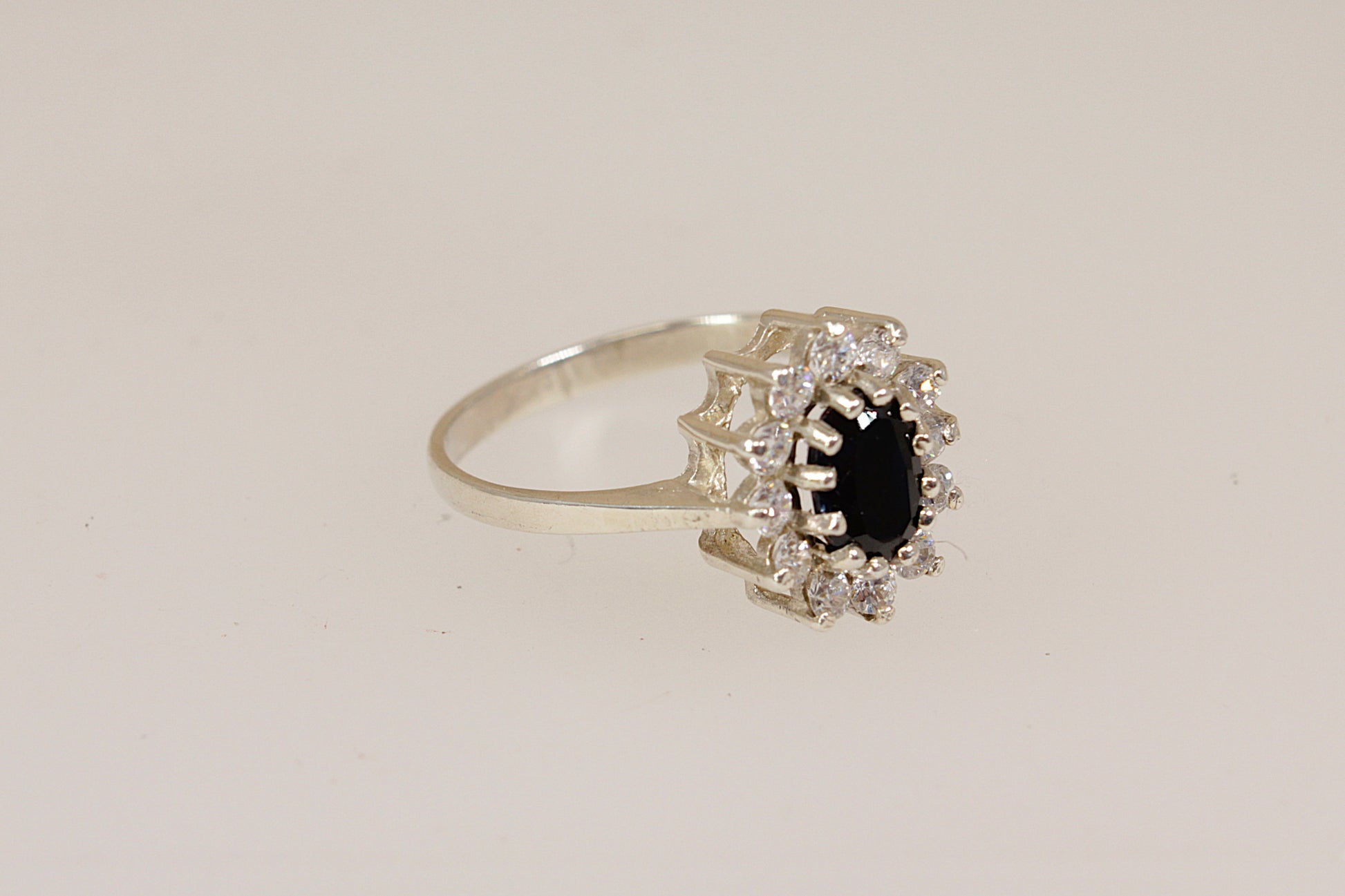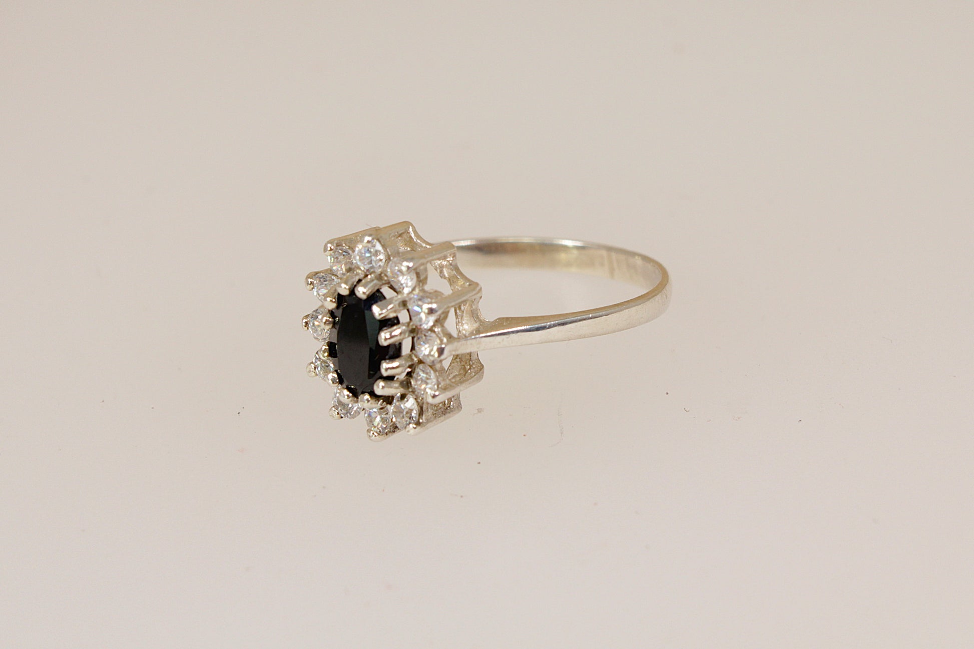 Vintage Silver Sapphire & CZ ‘Diana’ Style Cluster Ring